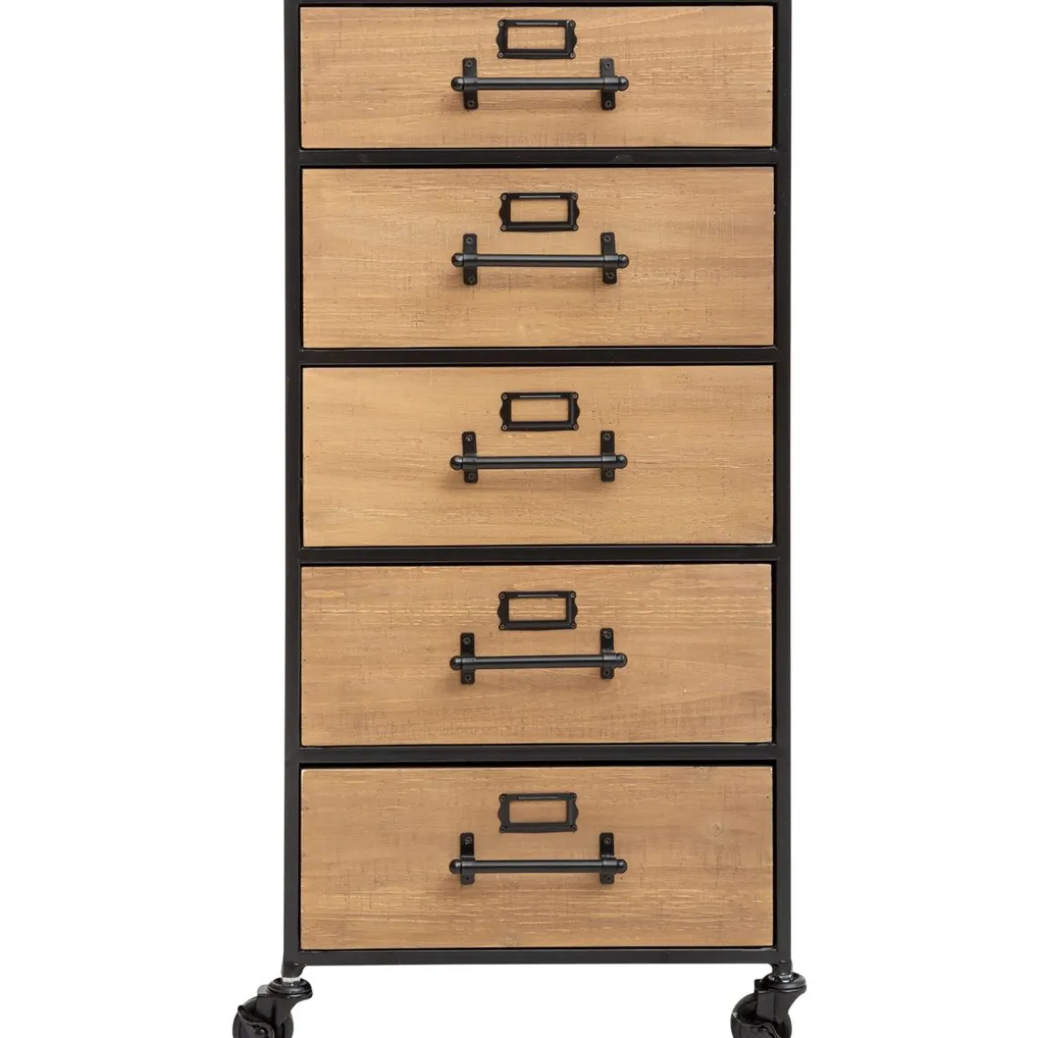 Chiffonnier en métal et bois sur roulettes 5 tiroirs H87cm PARIS