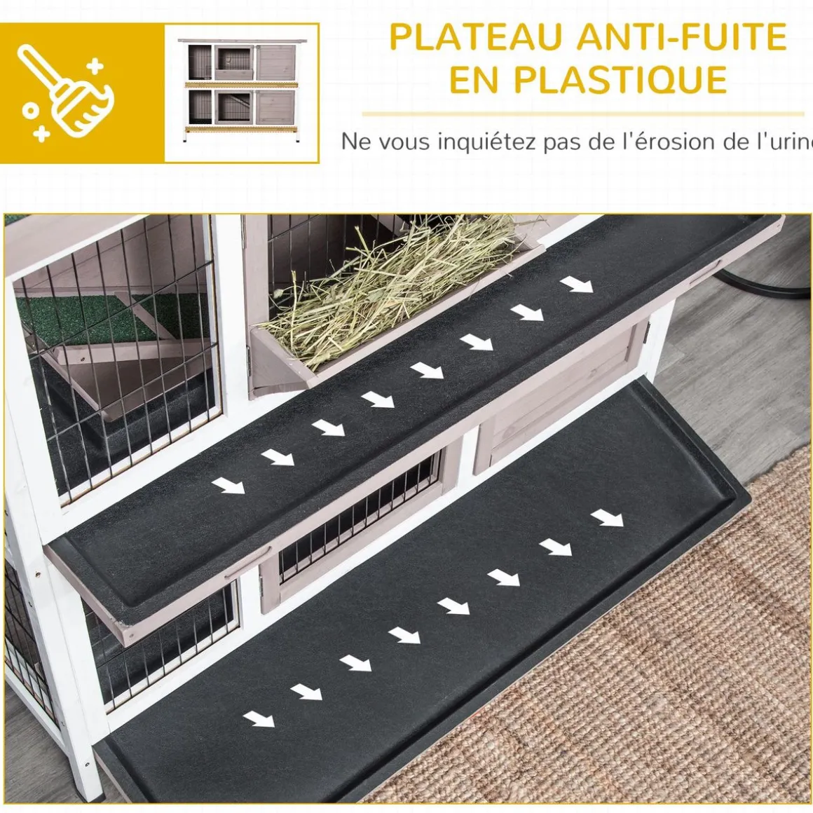 – Clapier à lapin sur pied 2 niveaux bicolore gris blanc très élégant