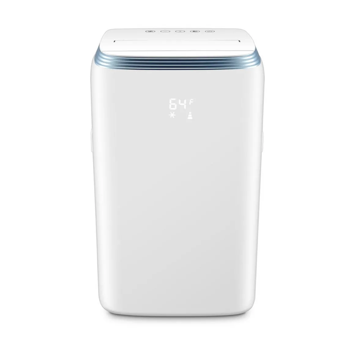 Qilive vous propose ici un climatiseur mobile 2 en 1 chauffant! Avec sa puissance frigorifique de 3200 W, ce climatiseur est idéal pour une pièce allant jusqu’à 22m². Qilive vous propose une télécommande permettant de régler votre climatiseur sur l’une des 3 vitesses disponibles. Vous oublierez presque la présence de ce climatiseur puisqu’il produit très peu de nuisances sonores, seulement 65dB à pleine puissance. Son design blanc épuré restera très discret dans la pièce où il est utilisé. À noter que ce climatiseur mobile a une capacité de déshumidification de 36L/J. Le plus de ce produit? Vous allez pouvoir l’utiliser même en hiver puisqu’il propose aussi une fonction chauffage! N’hésitez donc plus en cas de coup de chaud (ou froid) ce climatiseur Qilive est LE produit qu’il vous faut!