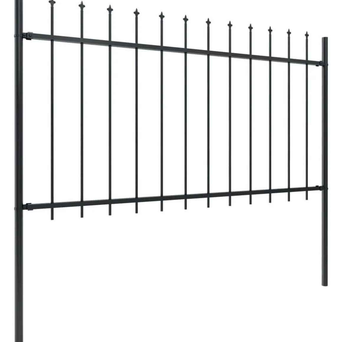Avec des barres verticales surmontees de pointes de lance et de solides renforts horizontaux qui renforcent le cadre, notre cloture de jardin offre un haut degre de securite. Fabriquee en acier enduit de poudre, la cloture exterieure est extremement stable, robuste et durable. Grace au materiel de montage fourni, la cloture de jardin est facile a assembler.