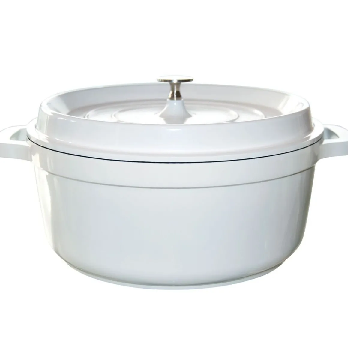 Cocotte ronde en fonte d’aluminium tous feux dont induction 24 cm avec couvercle Blanc