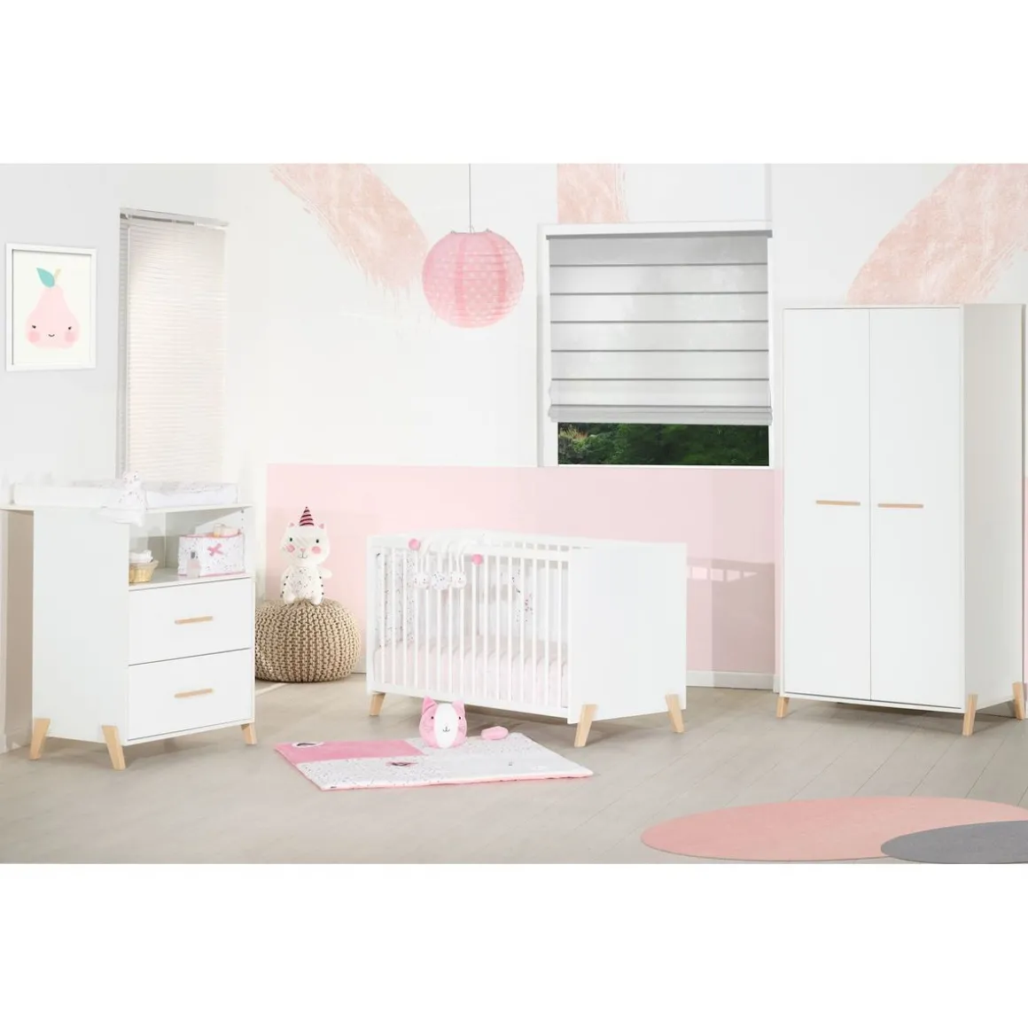 – 2 joues du dispositif à langer en panneaux de fibres de moyenne densité (MDF) laquées blanc.