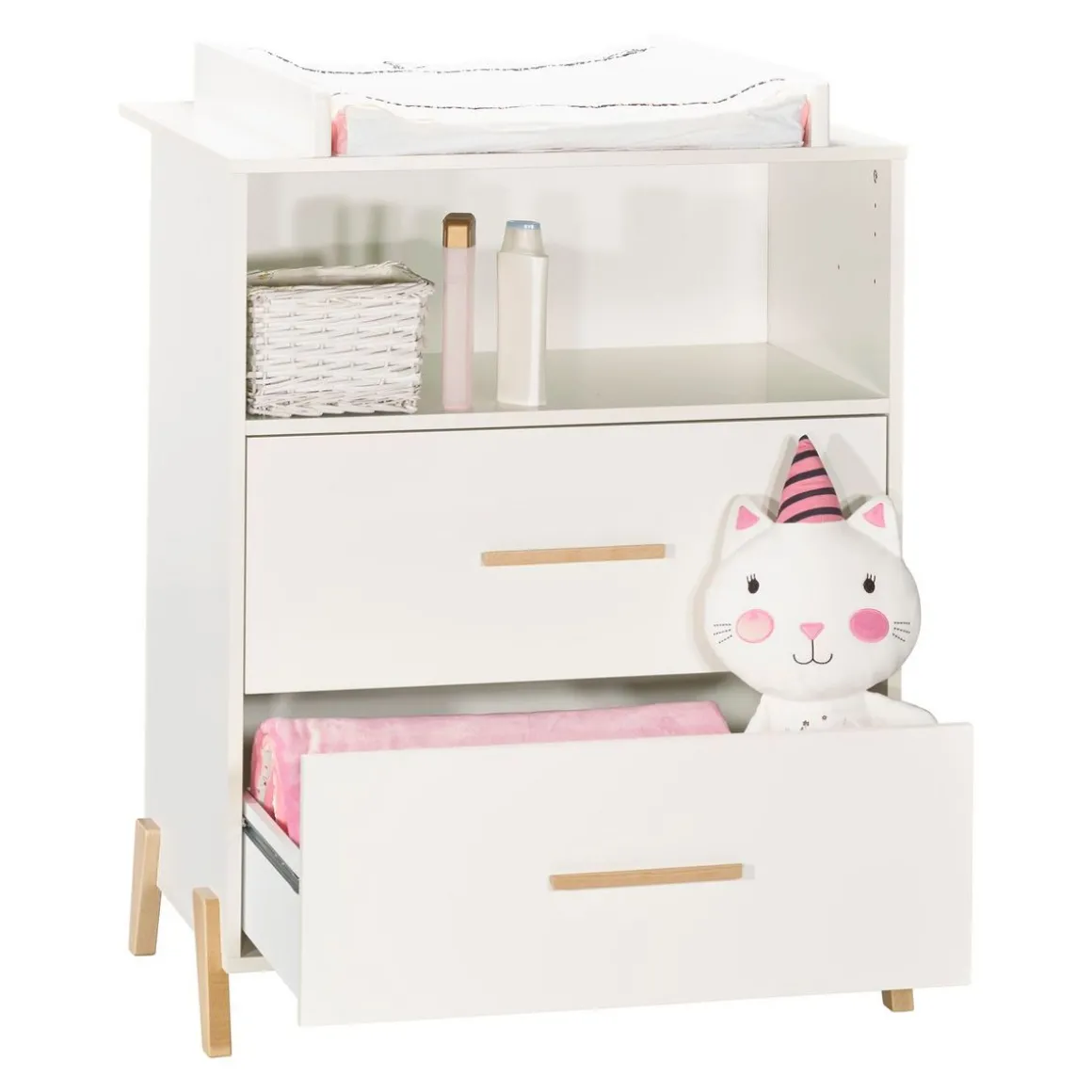 Dimensions de la commode JOY: 76 x 103 x 66cm. Dimensions utiles dispositif à langer: 68x52cm.
