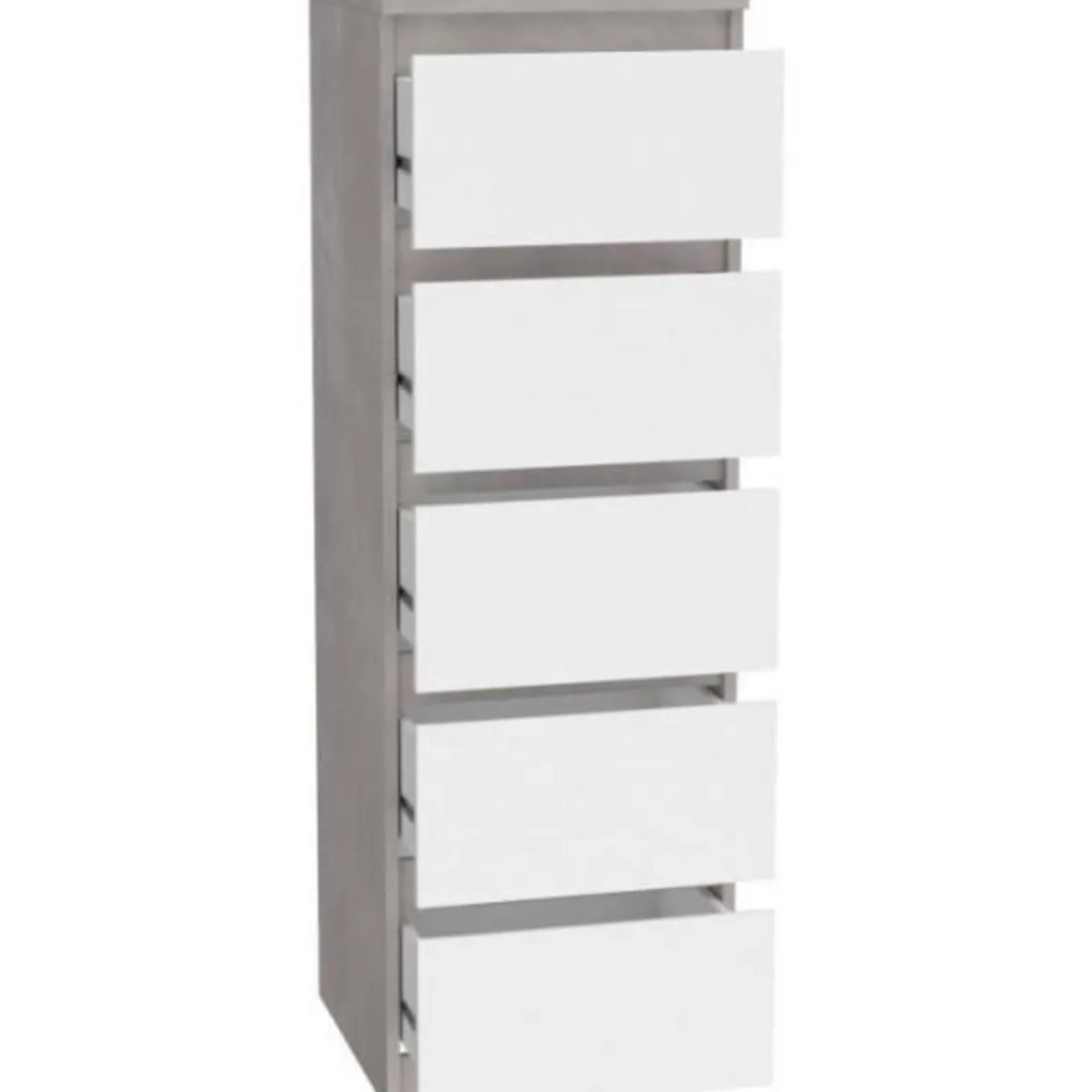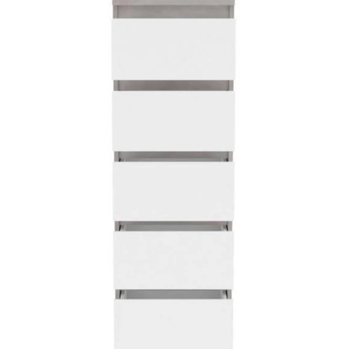 Commode CHELSEA 5 tiroirs – 41,8 cm – Décor optique béton clair KILOX et blanc mat