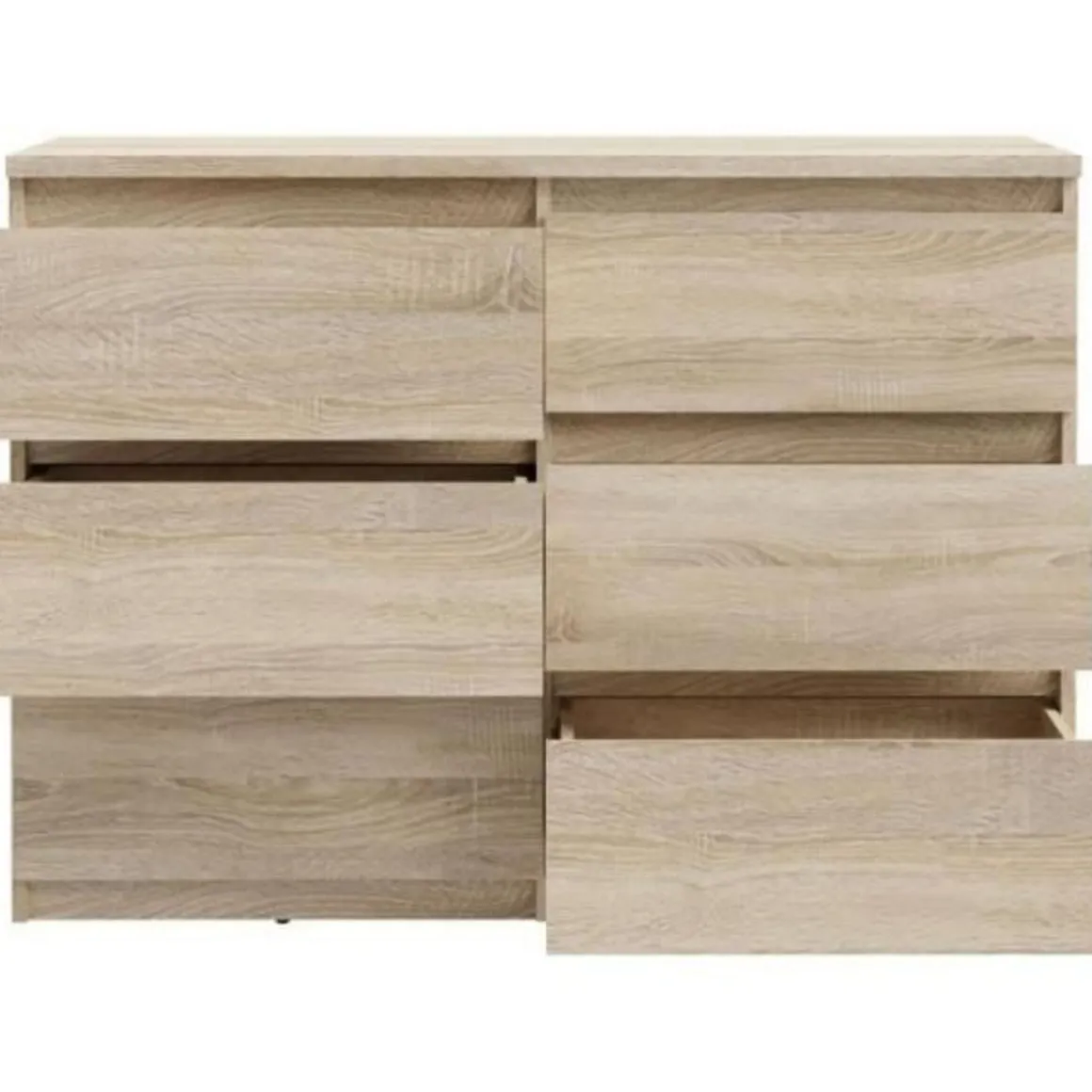 Commode CHELSEA 6 tiroirs – L 110 x P 42 x H 80 – Décor chene sonoma