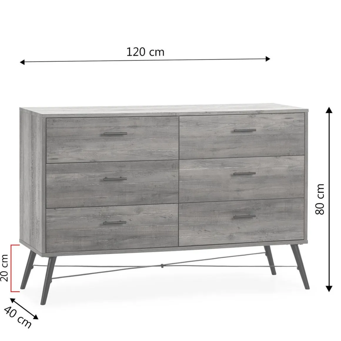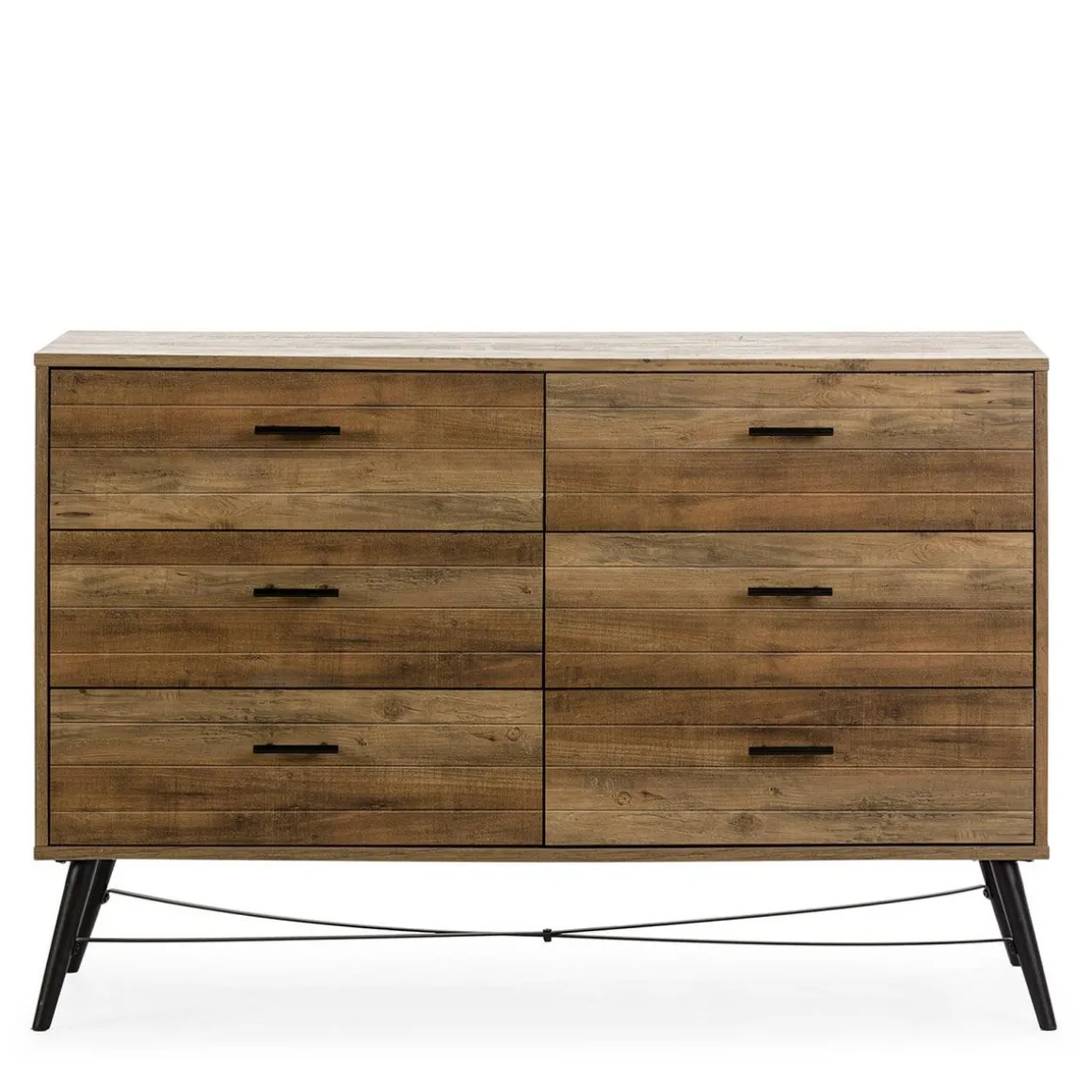 ·, La commode Clavel est composée de six tiroirs avec poignées en métal noir. Les tiroirs ont des glissières en métal et disposent d’une capacité de rangement pour ranger vos vêtements : t-shirts, pulls, pyjamas, sous-vêtements, literie…