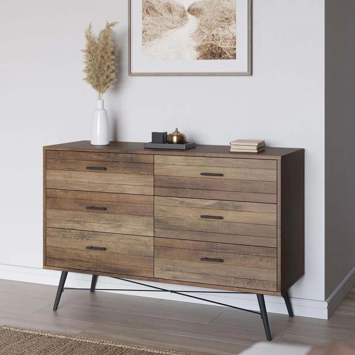 COMMODE DE CHAMBRE CLAVEL 6 TIROIRS COULEUR RUSTIQUE