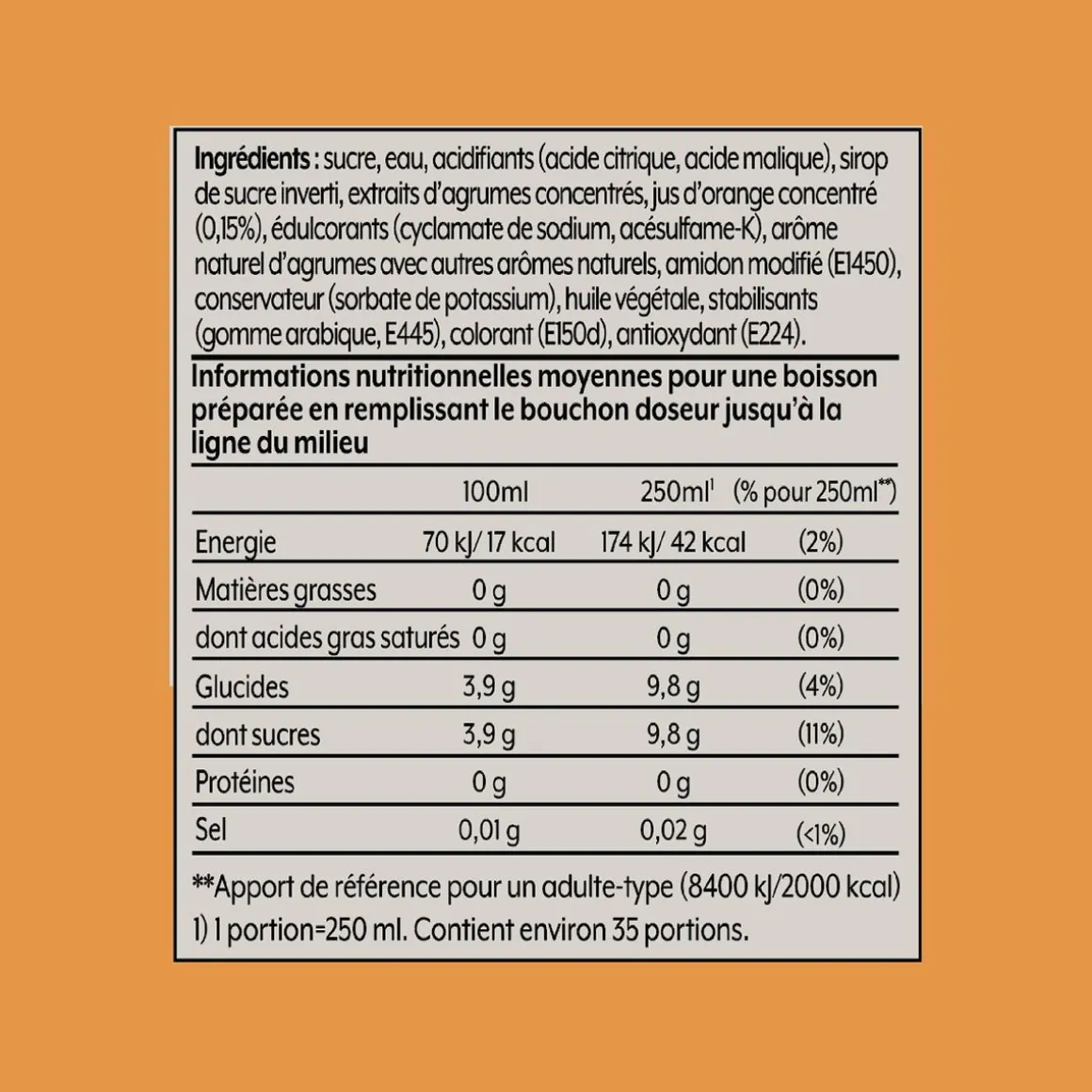 | Dosage | 1 bouchon doseur = 1 bouteille de soda. Le meilleur dosage reste le vôtre. A titre indicatif le bouchon présente 3 traits à l’intérieur (le 1er trait pour 1 verre, le 2ème pour 0,5 l et le troisième pour 1 l | |