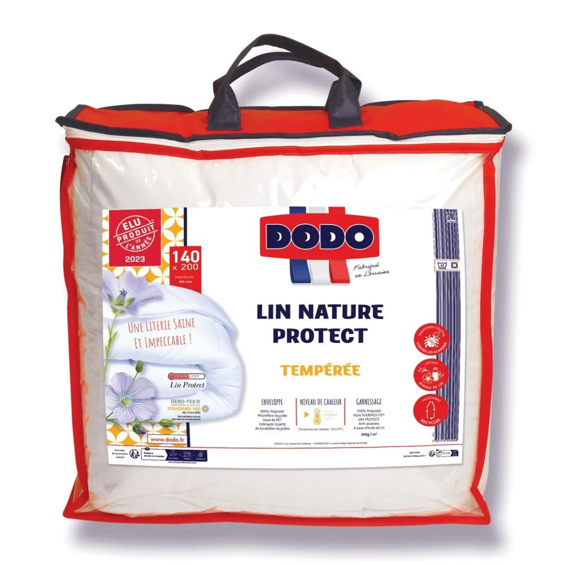 Confectionnée avec un Tissu 100% Polyester Microfibre – tout Doux – Issu de PET – Fabriqué à partir de Bouteilles Recyclées, notre Planète nous dit Merci ! Garnie de Fibre 100% Polyester THERMOLITE® LIN PROTECT*, Creuse et Siliconée, nouvelle Génération, elle est Traitée Anti-Acariens, à Base d’Huile de Lin (Le Lin, dont la France est le 1er Producteur Mondial), pour une Literie Confortable, Saine et Impeccable ! *Exclusivité DODO® en Partenariat avec son Fournisseur de Fibres Historique, la Société ADVANSA. Tempérée, pour un Usage tout au long de l’Année. Fabrication Française, Qualité Garantie.