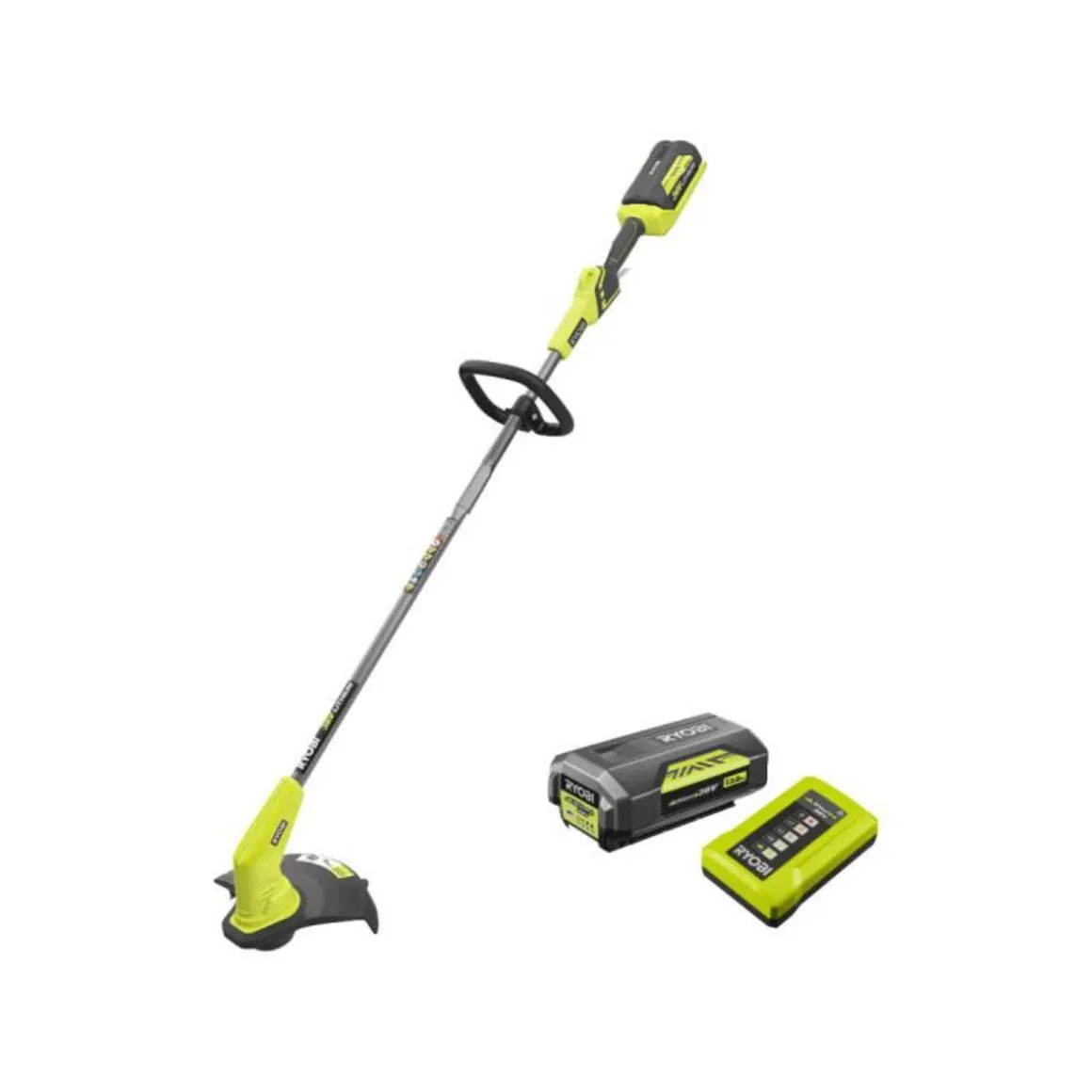 Un coupe bordures RYOBI 36V LithiumPlus – 1 batterie 2.0 Ah – 1 chargeur RY36LT33A-120