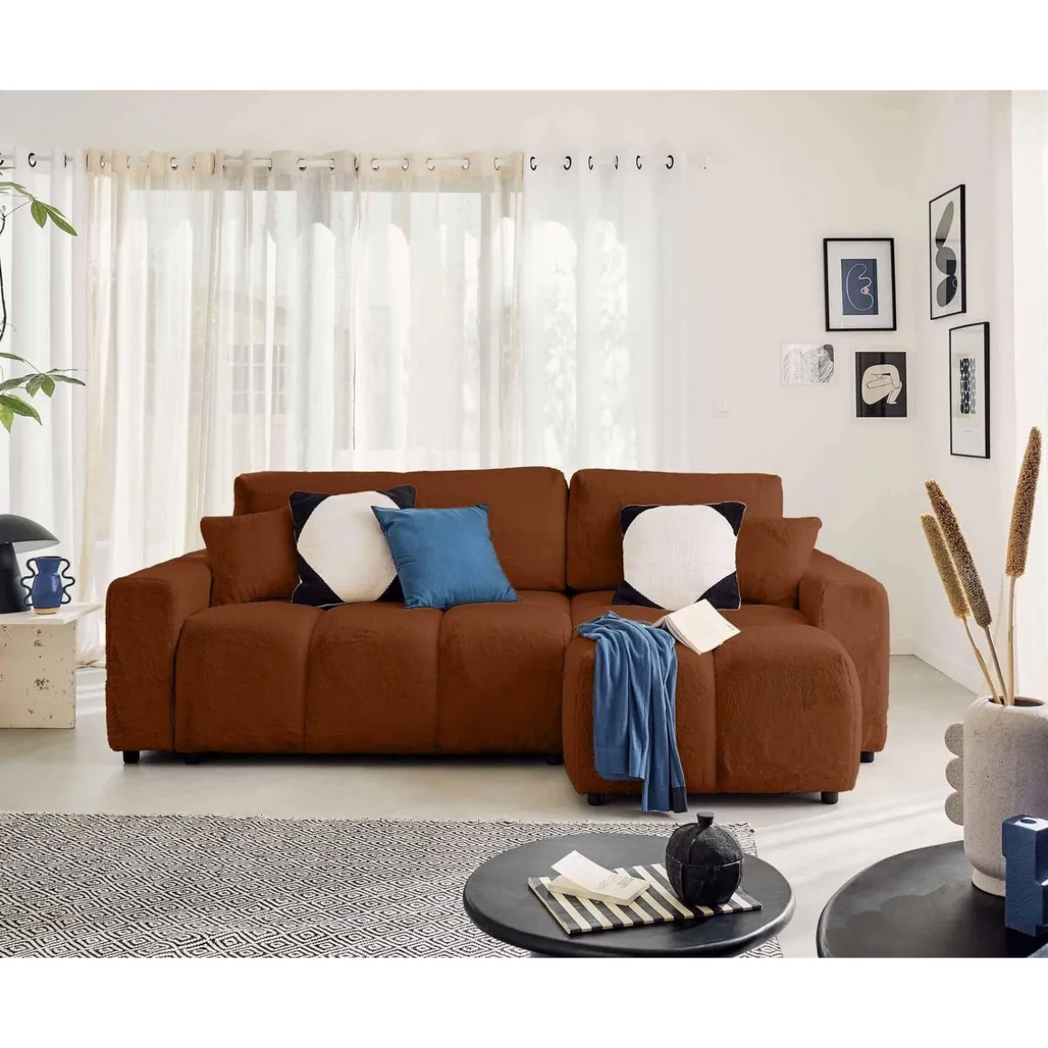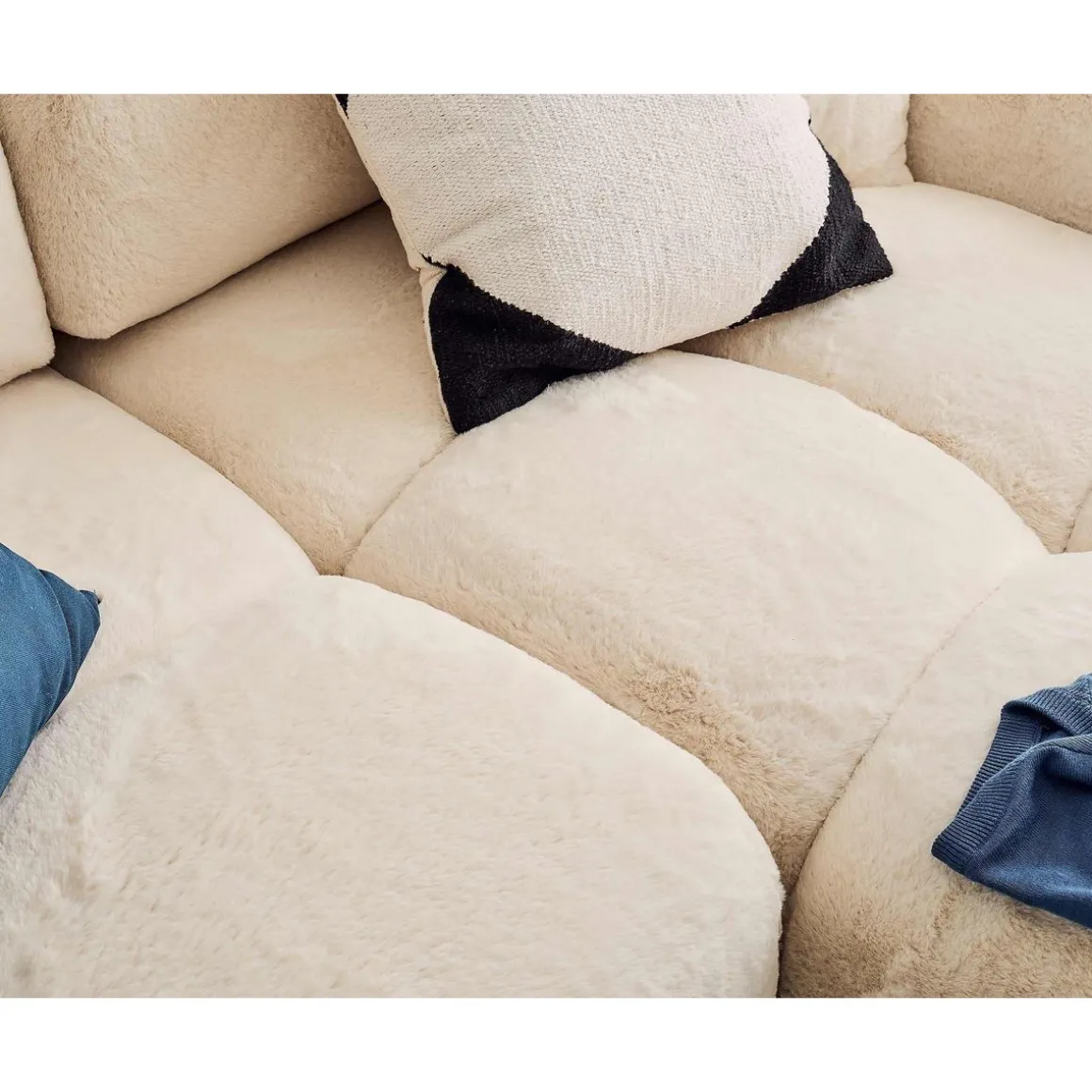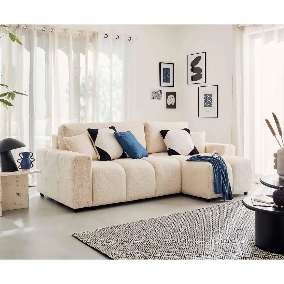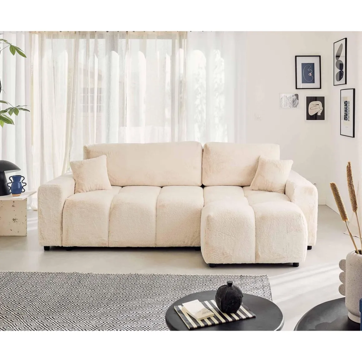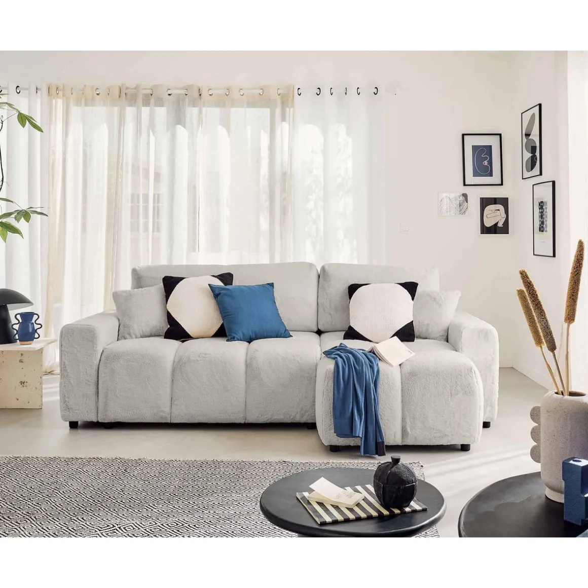 Véritable icône du design, le canapé d’angle réversible 4 places Crocus est la parfaite rencontre entre confort et tendance. Son look original en forme de nuage associé à son revêtement en fausse fourrure tout doux fait de ce canapé, un modèle authentique. Son assise moelleuse et rebondie vous enveloppera pour de doux moments de détente.