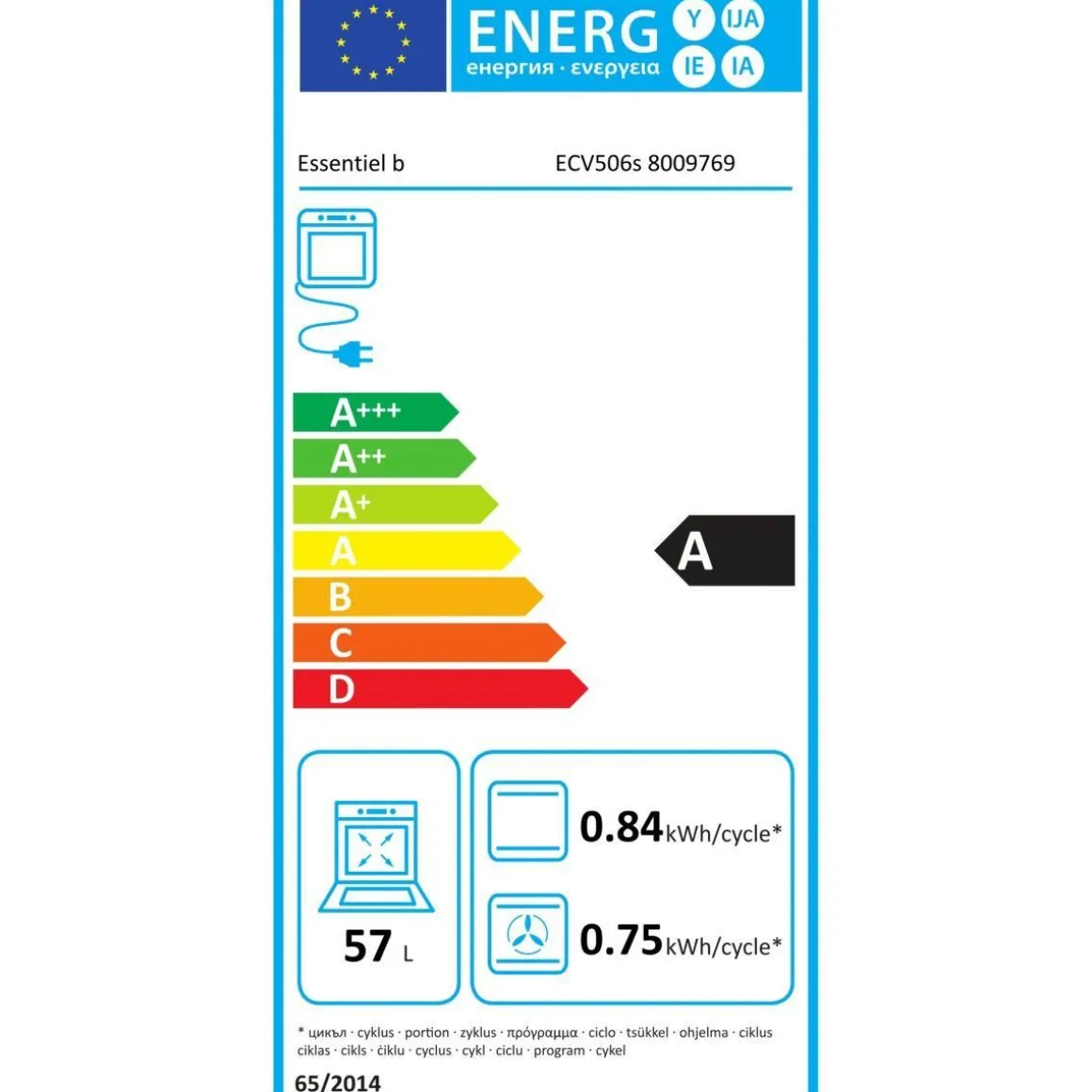 | Valeurs du label énergie | Label énergie A, Consommation en convection naturelle 0,84 kW, Consommation en chaleur tournante 0,75 kW | |