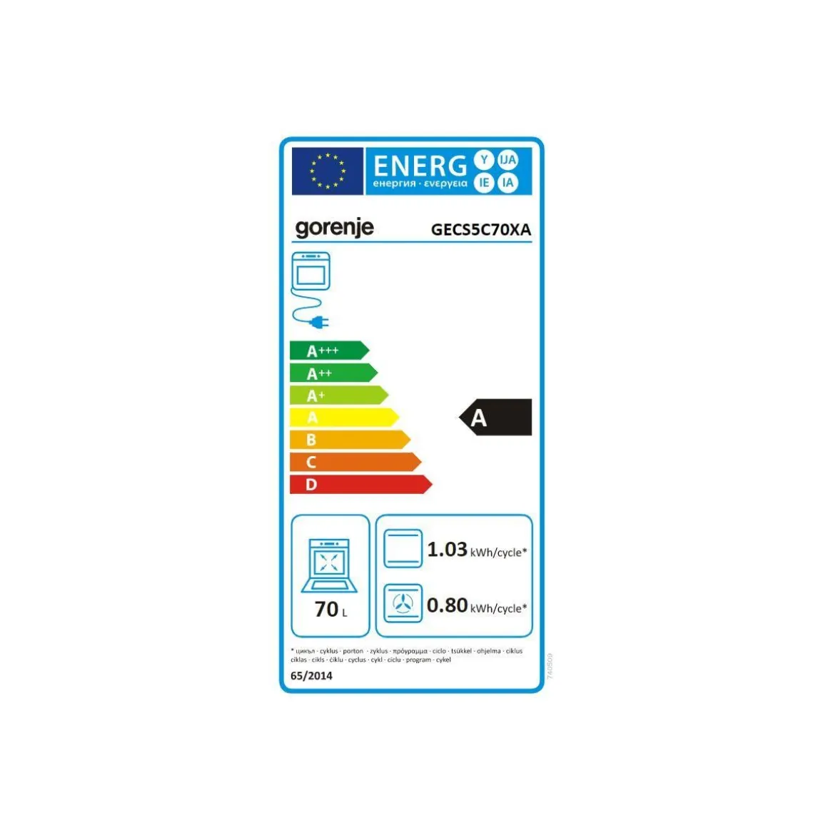 | Valeurs du label énergie | Label énergie A, Consommation en convection naturelle 1,03 kW, Consommation en chaleur tournante 0,8 kW | |
