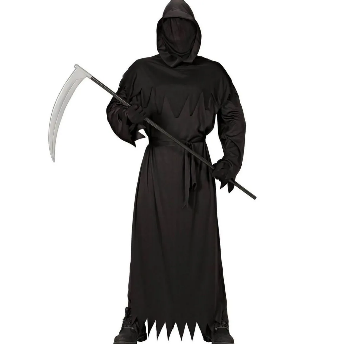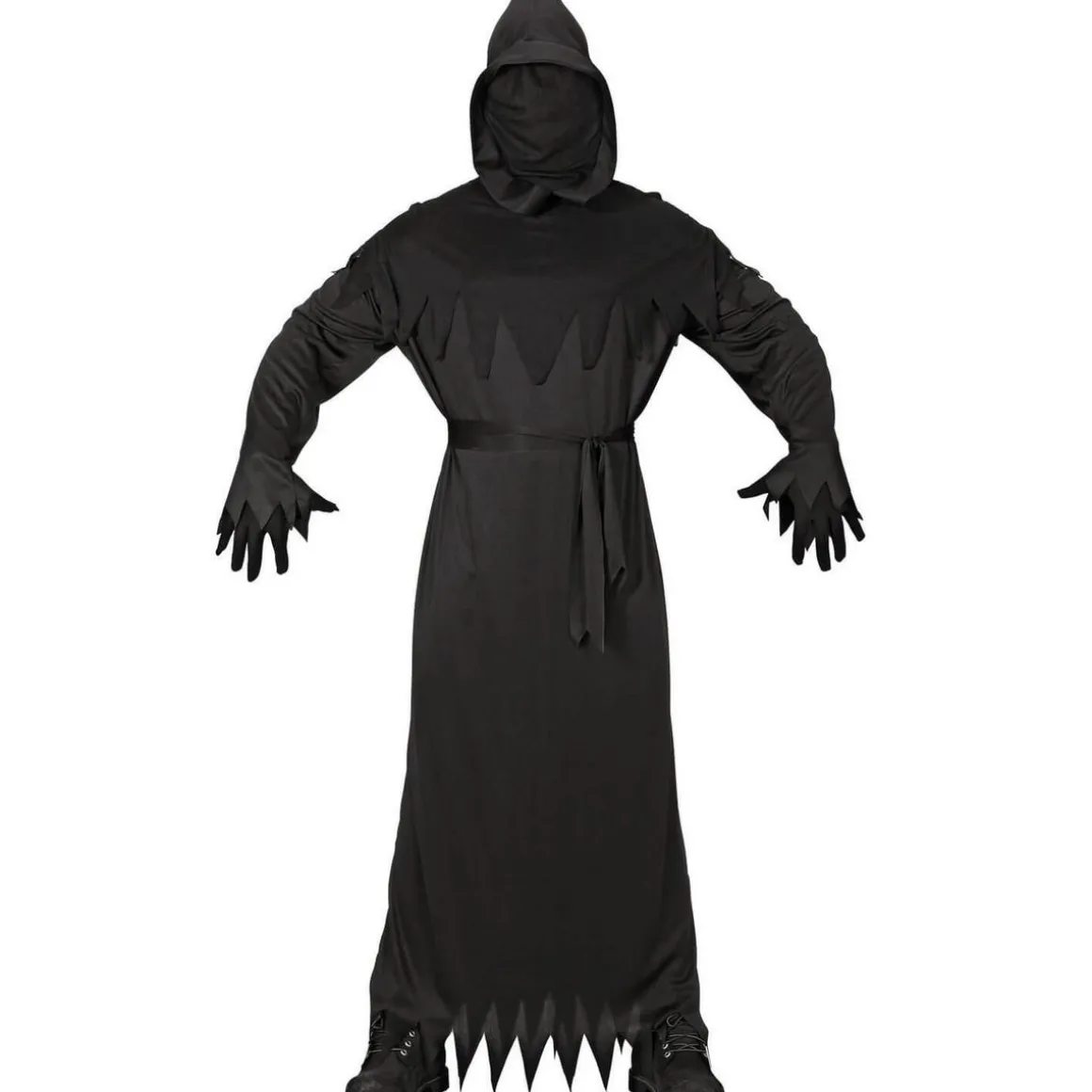 XXL – Contenu : 1 tunique avec capuche et masque, 1 ceinture.Ce déguisement comprend une tunique entièrement noire. Elle possède des manches longues. Le bas des manches et de la tunique sont découpés en pointe pour faire un effet déchiré. La tunique peut être resserrée à la taille avec une ceinture en tissu noir incluse. Le déguisement vient avec une capuche et un masque intégré. Le masque est en tissu noir et recouvre intégralement le visage. Age minimum : la naissance