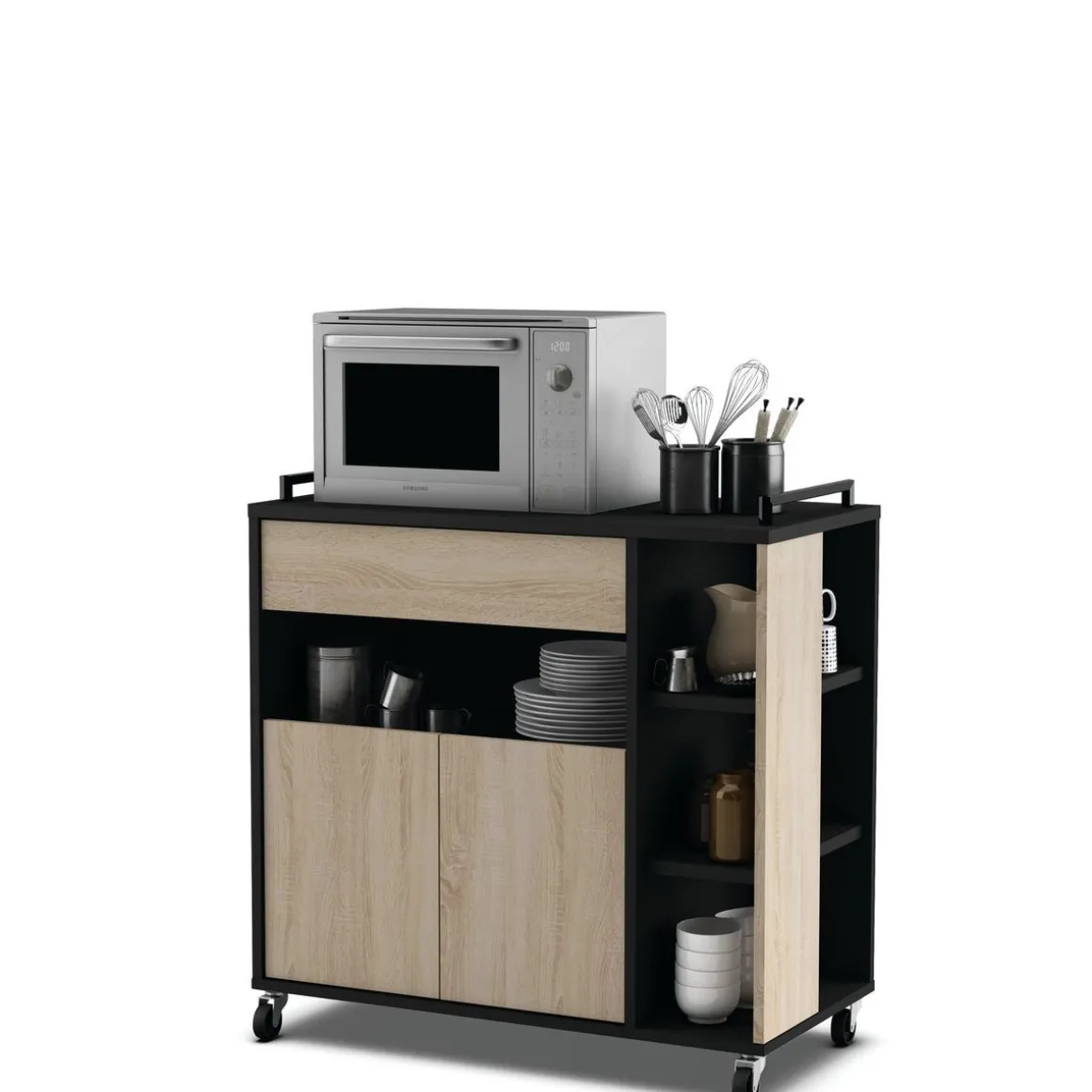 Pratique les 2 poignées noires sur chaque côté et les 4 roulettes pour faciliter le déplacement