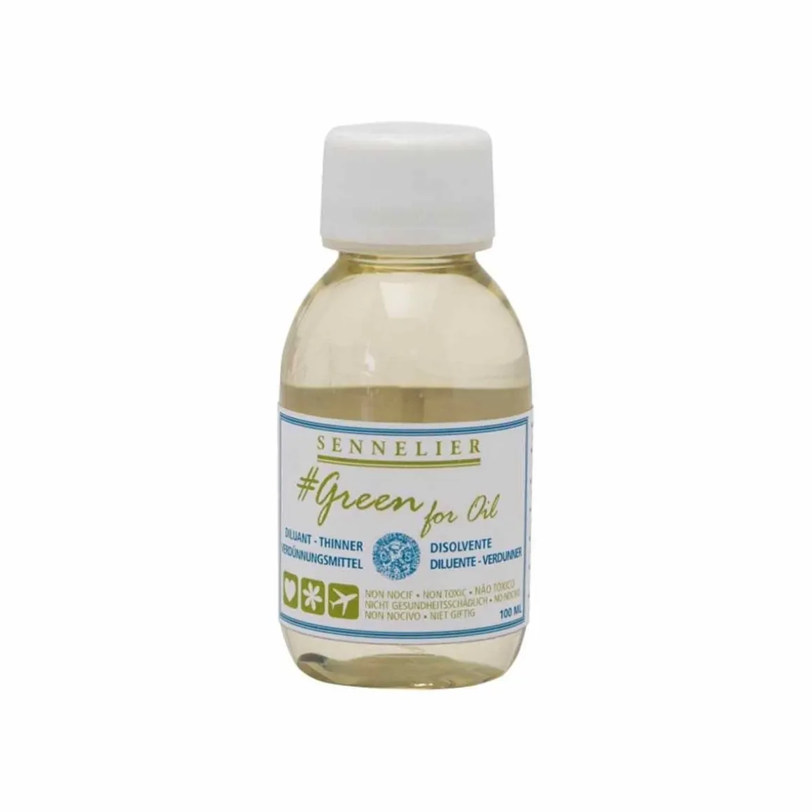 Diluant non polluant, mélanger la substance à votre pâte afin de fludifier la matière et faciliter votre esquisse en début d’œuvre. Contrairement aux médiums altiques, ‘Green for Oil’ est une gamme de médiums et de diluant pour la peinture à huile qui ne contient pas d’essences minérales ou de térébenthine qui peuvent gêner certains utilisateurs. Ces gênes peuvent aller jusqu’à des irritations et des allergies. Elles ont été remplacées par des mélanges d’acides gras et des esters d’origine végétale. Les résines et huiles utilisées dans la gamme « Green For Oil » sont les mêmes que pour les additifs standards (résine cétone pour le médium, huile de carthame pour le médium en gel). Ce sont les solvants utilisés pour les mettre en œuvre qui sont non toxiques et qui rendent la gamme non toxique. L‘odeur : L’odeur est agréable un peu huileuse. Le mélange est agréable à faire, mais attention, il faut utiliser très peu de diluant autrement vous aurez un temps de séchage beaucoup trop long
