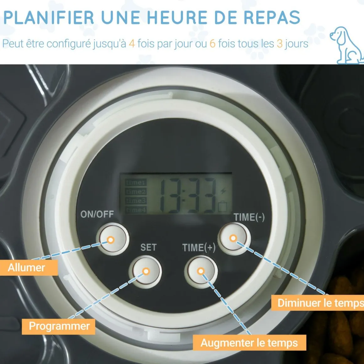 – Fonction musicale intégrée pour inciter votre animal à manger à l’heure du repas souhaitée