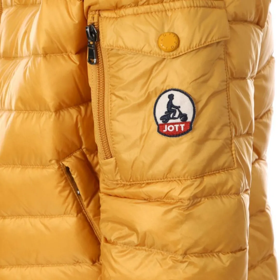 Craquez pour cette doudoune de la marque JOTT à prix bas ! Coloris : jaune Matière matelassée satinée et déperlante Manches longues Garnissage en plumes Coupe ajustée 2 poches côtés invisibles Coutures intérieures de couleur contrastée Logo feutrine original manche gauche Remplissage : 90% duvet, 10% plume Composition : 100% Polyamide Pochonnable Nous vous conseillons de prendre une taille au-dessus de votre taille habituelle !