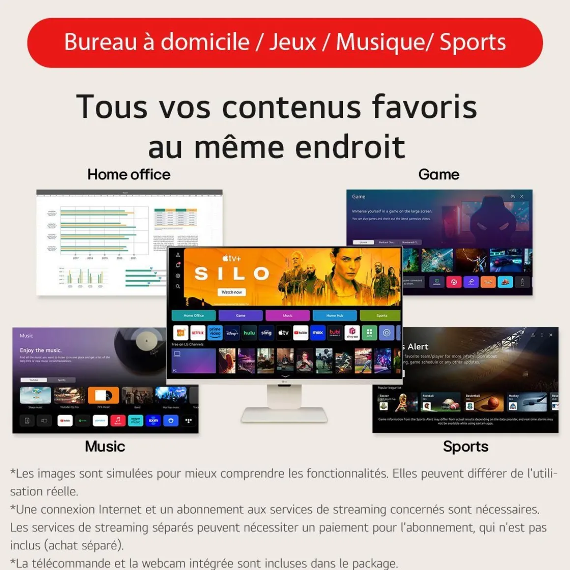 | Avantage des écrans pc connectés | LG MyView, des moniteurs hybrides entre écran PC et TV, offrant des fonctions inédites grâce à l’interface WebOS | |
