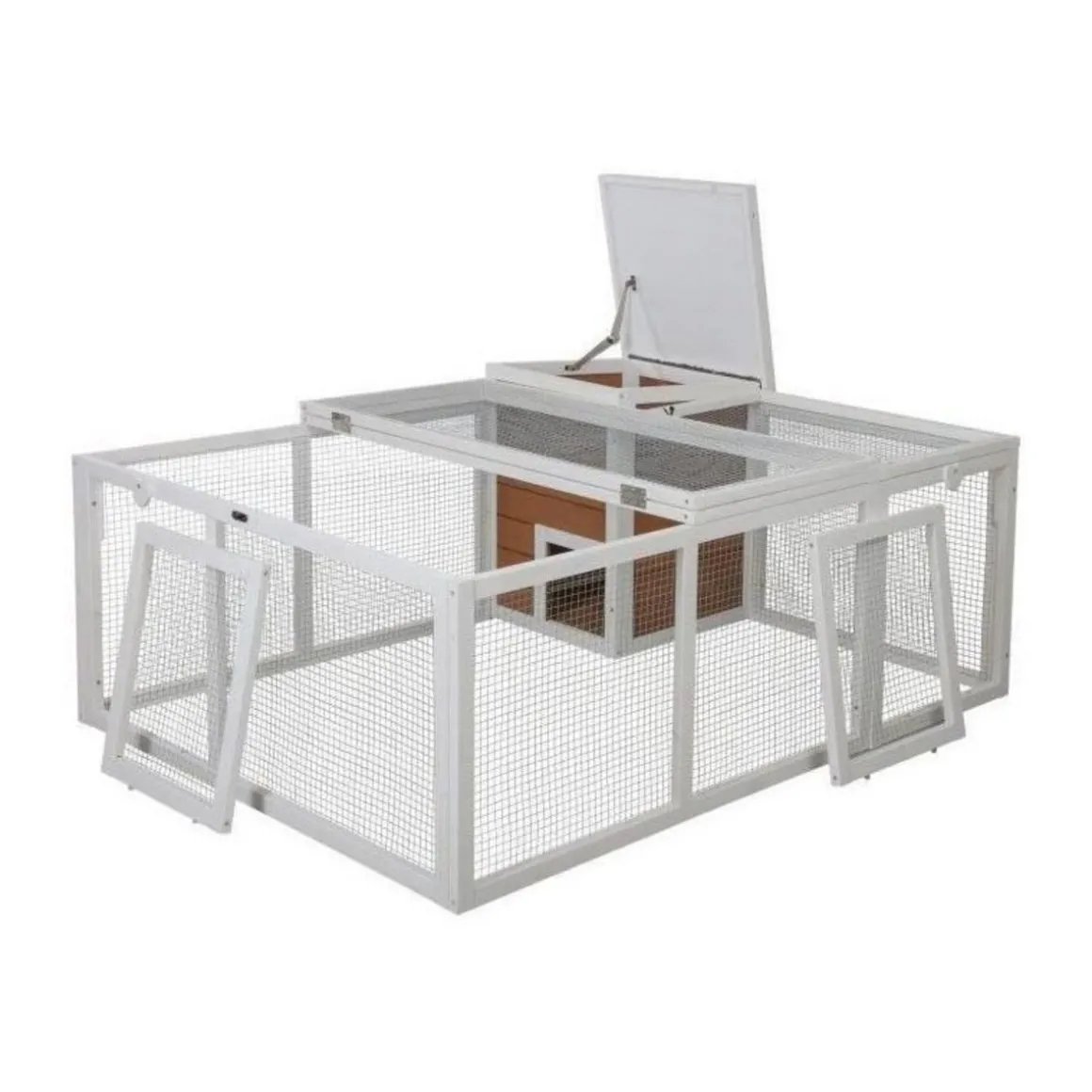 Cet enclos d’extérieur pour petits animaux offre un grand espace pour leurs activités quotidiennes. La maison en bois de haute qualité, avec un plancher de protection contre le vent et les intempéries inclus, assure un confort optimal. Le toit grillagé de l’enclos et le toit de l’abri sont ouvrables par le haut.