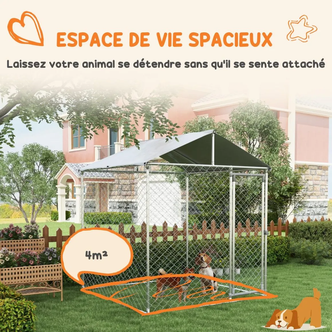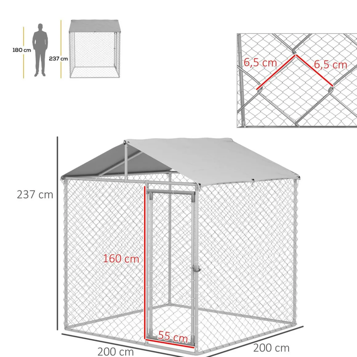 – Enclos poulailler chenil grande taille dim. 2L x 2l x 2,37H m soit une surface de 4 m² idéale pour que votre basse-cour puisse gambader dans le confort et la sécurité absolue !