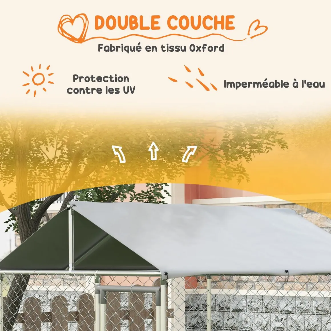– Poulailler chenil entièrement couvert avec une bâche en PE haute densité 210D (bâche imperméable & anti-UV fournie avec cordons de maintien à la structure)
