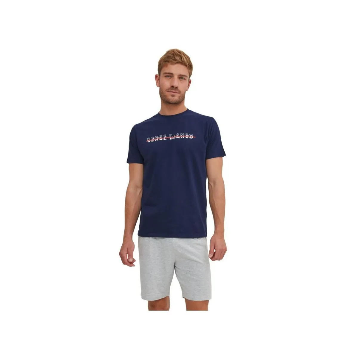 Découvrez notre magnifique pyjama homme bleu et gris 100% coton SERGE BLANCO, conçu pour vous offrir un confort optimal et un style incomparable. Ce pyjama est composé d’un tee shirt homme à manches courtes et d’un short, pour une tenue légère et respirante qui vous accompagnera tout au long de la nuit.