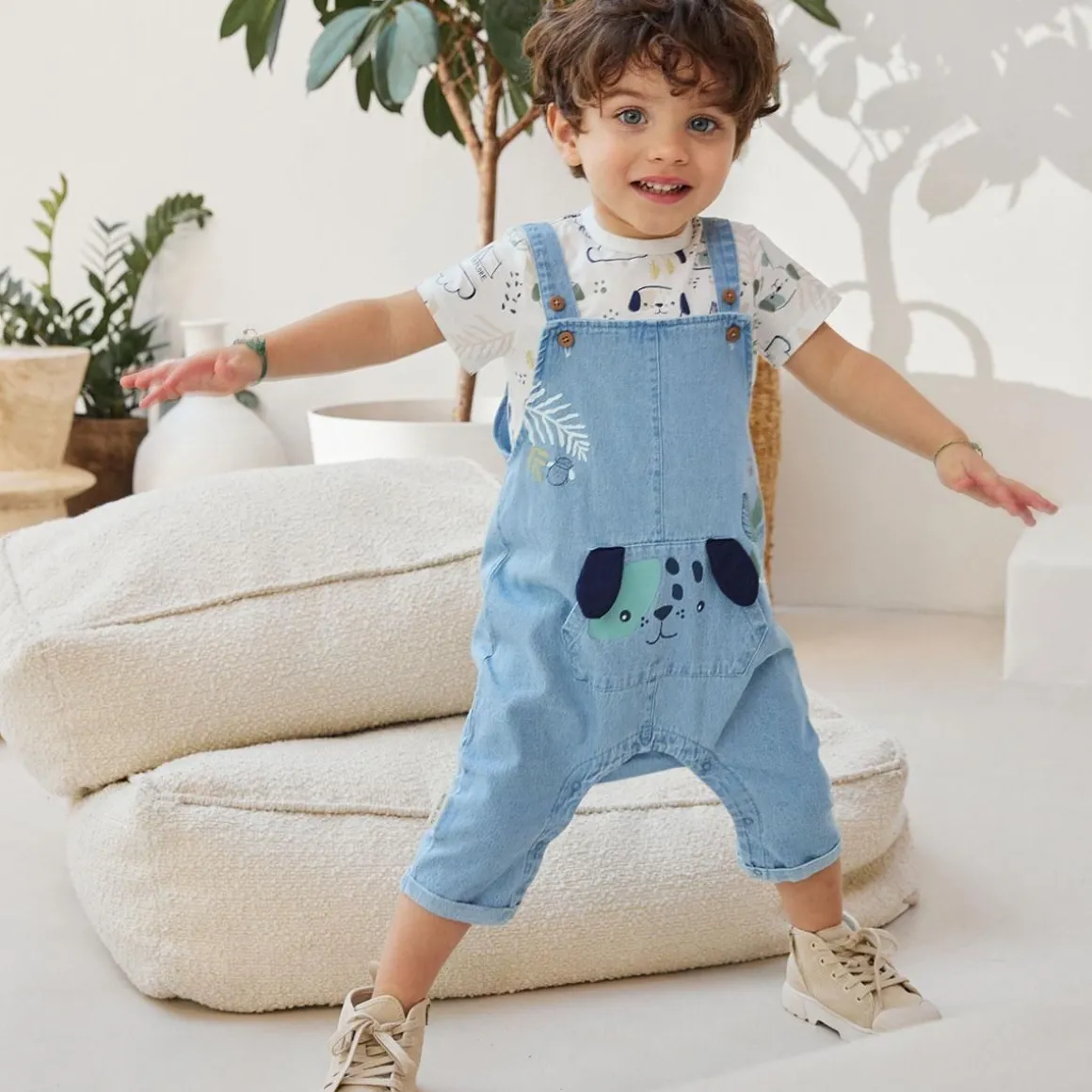 Prêt à sortir pour découvrir le monde ? Votre petit bout n’aura qu’à enfiler sa super salopette ! En denim, avec des bretelles réglables et une poche kangourou, cet ensemble deviendra l’incontournable du dressing de votre bébé. Des pressions au dos du t-shirt : pratique ! Les petits + qu’on adore : Bretelles réglables avec des boutons effet bois et ouverture sur le bas par des pressions! Une poche kangourou sur le devant : trop craquant