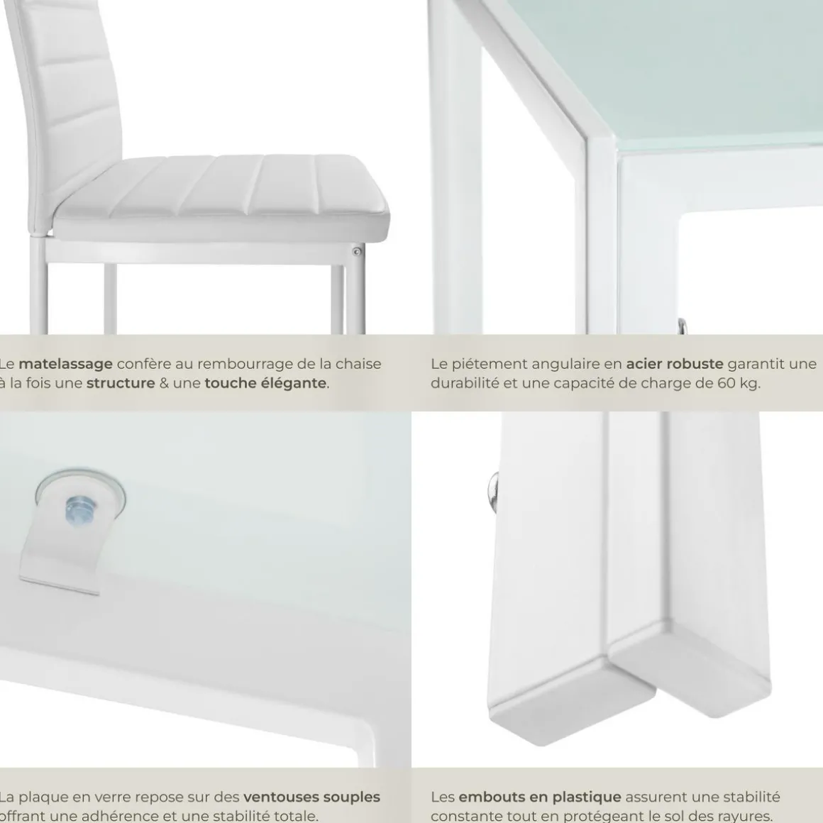 - Diamètre du pied de la chaise : env. 2,2 cm Ø.