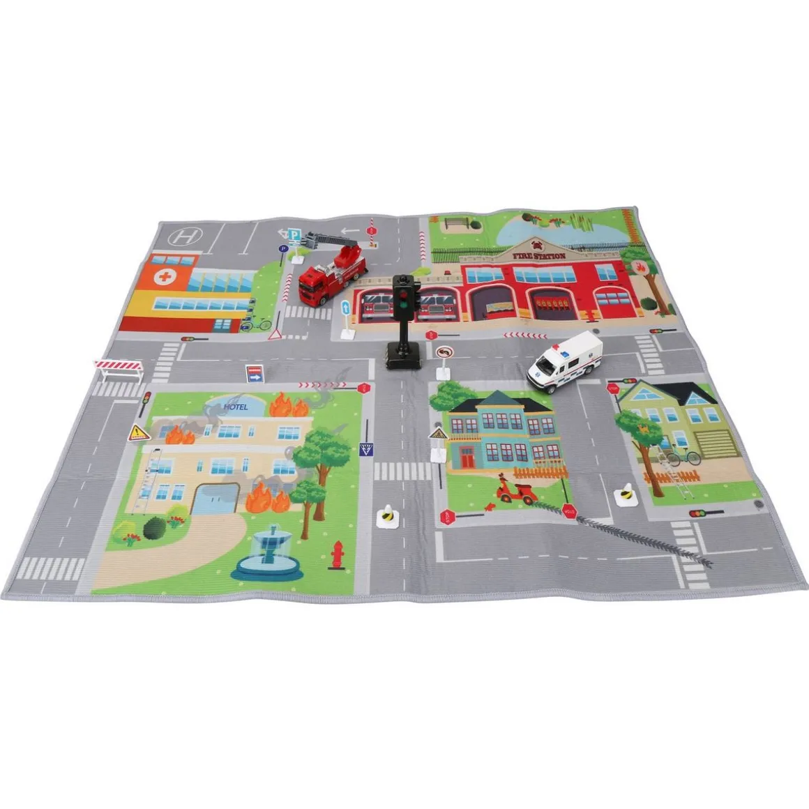 Ensemble Tapis et véhicules de pompier et ambulances