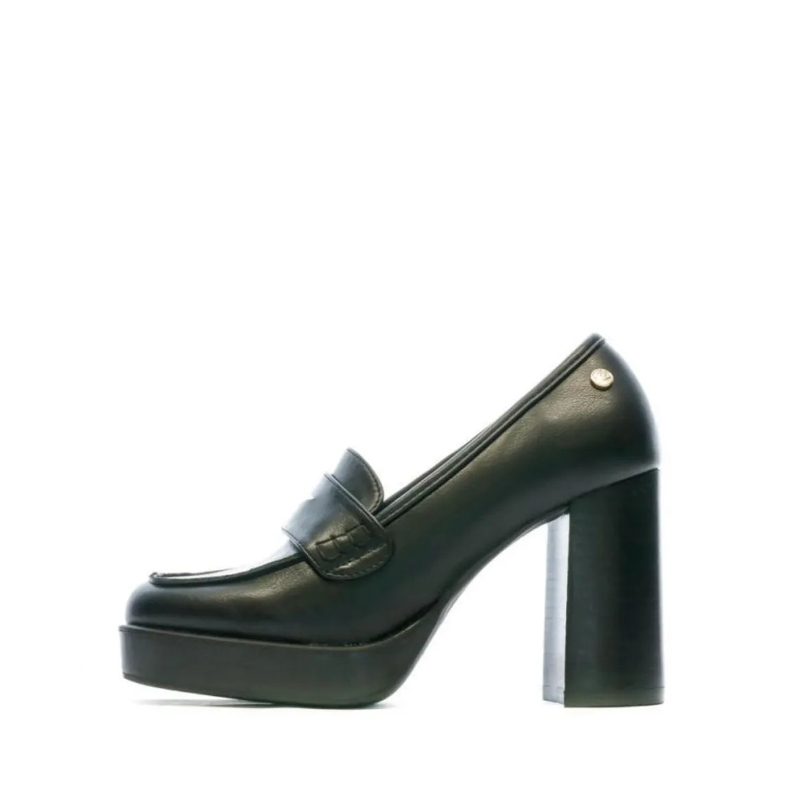 Optez pour ces escarpins de la marque XTI ! Coloris : noir Dessus / Tige: Imitation cuir haute-qualité Doublure: Imitation cuir Semelle de propreté: Imitation cuir Semelle d’usure: Matière synthétique Hauteur du talon: 9 cm Hauteur de plateau: 3 cm