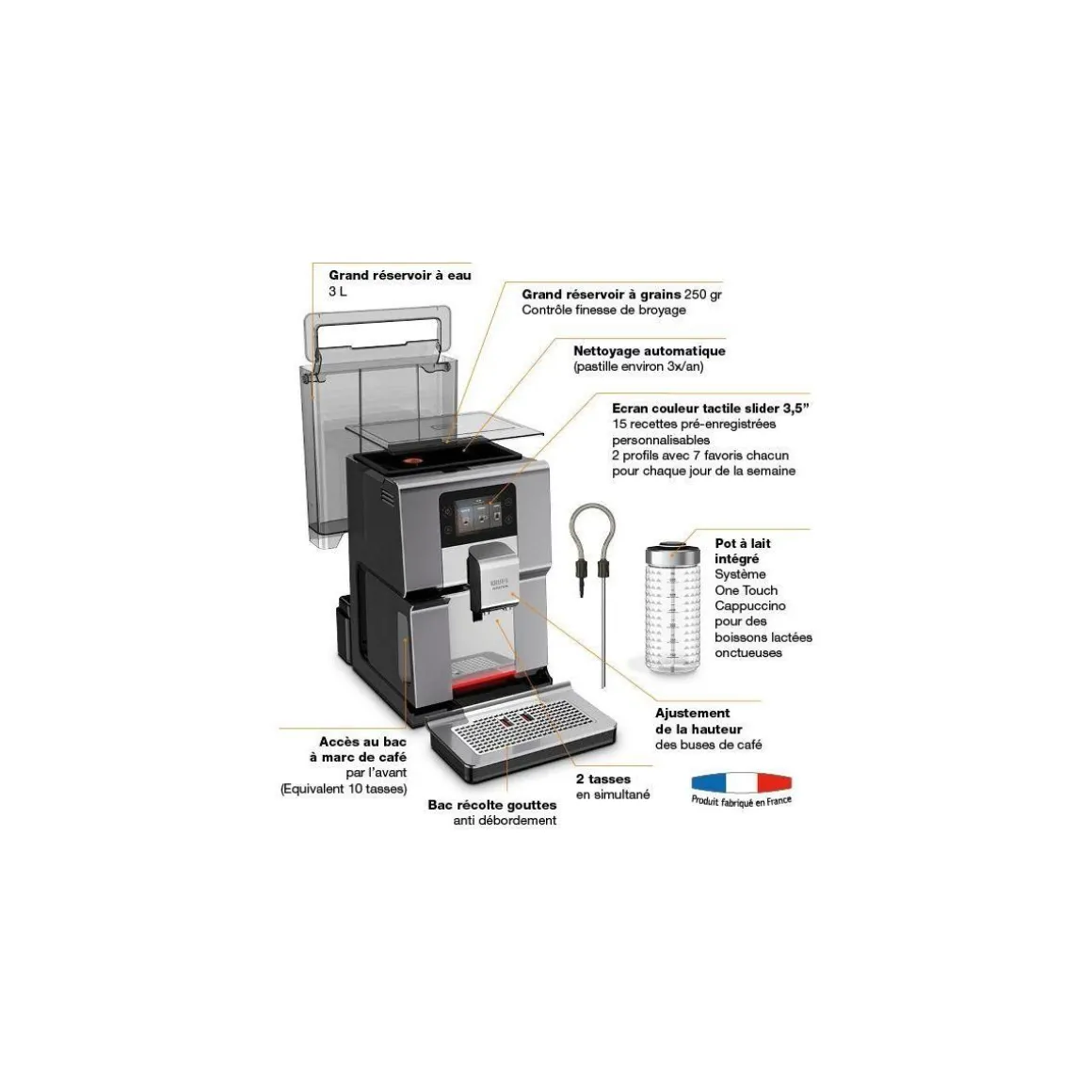 | Système de boissons lactées | carafe à lait amovible pour préparer automatiquement vos boissons lactées et conserver votre lait au réfrigérateur | |
