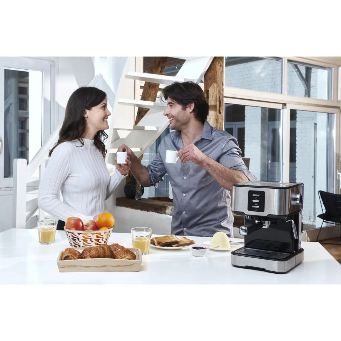 Avec l’expresso pompe Qilive, découvrez une machine efficace et simple d’utilisation. Au-delà de son design élégant, rendu possible notamment par son coloris gris métal, ses 15 bars de pression vous permettront d’impressionner tous vos invités avec des cafés pleins de saveurs.