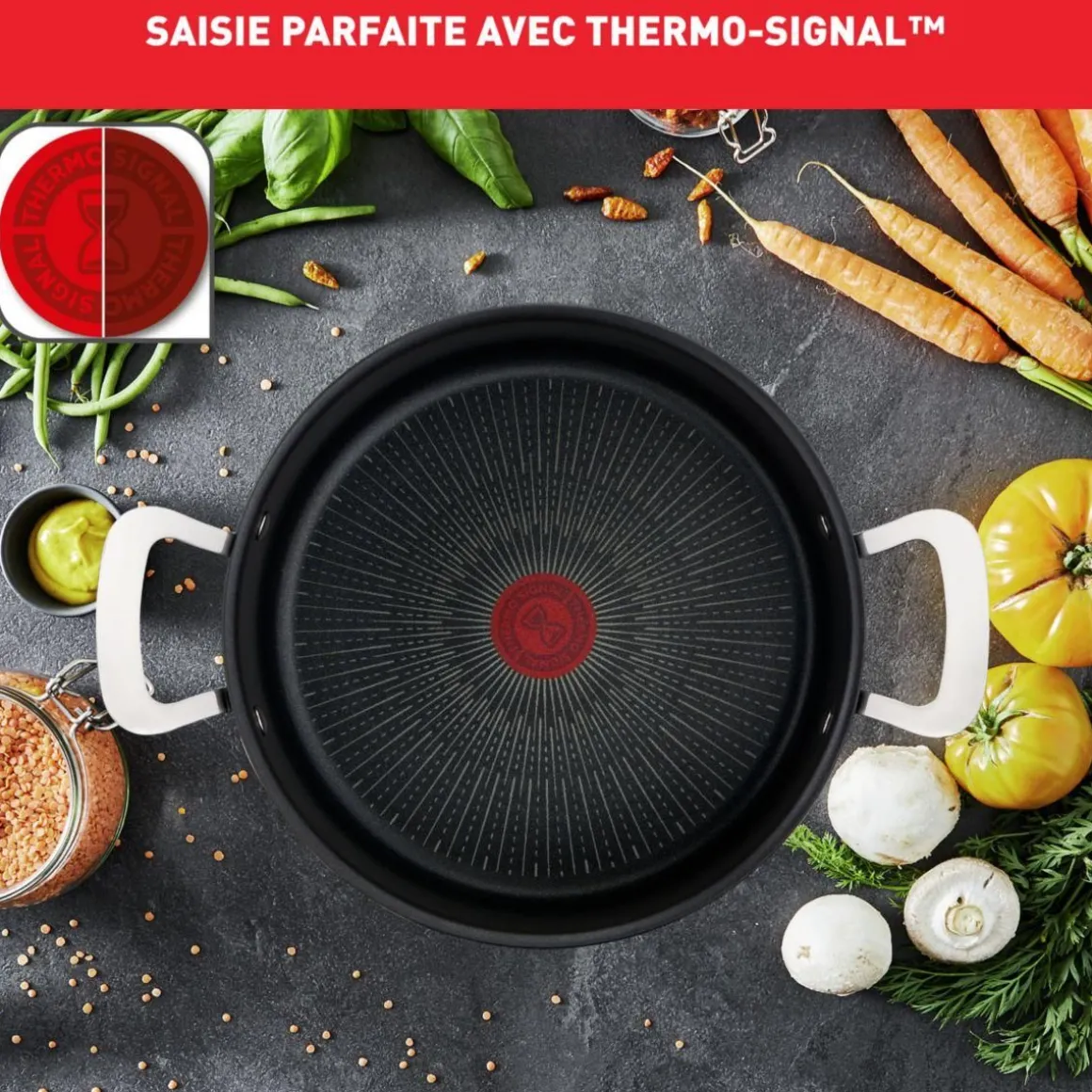 | Particularité | revêtement anti-rayures TITANIUM offre une durabilité antiadhésive résistant aux ustensiles métalliques.ThermoFusion:assure une distribution rapide et optimale de lachaleur pour une cuisson parfaite des aliments.Compatible four jusqu’à 250°sauf couve | |