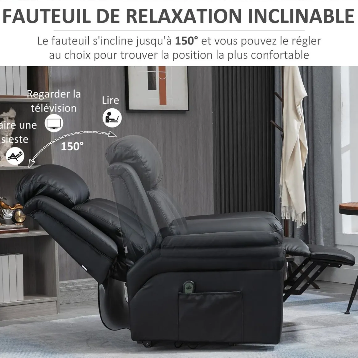 – Équipé d’un dossier inclinable et d’un repose-pieds relevable électriquement par télécommande