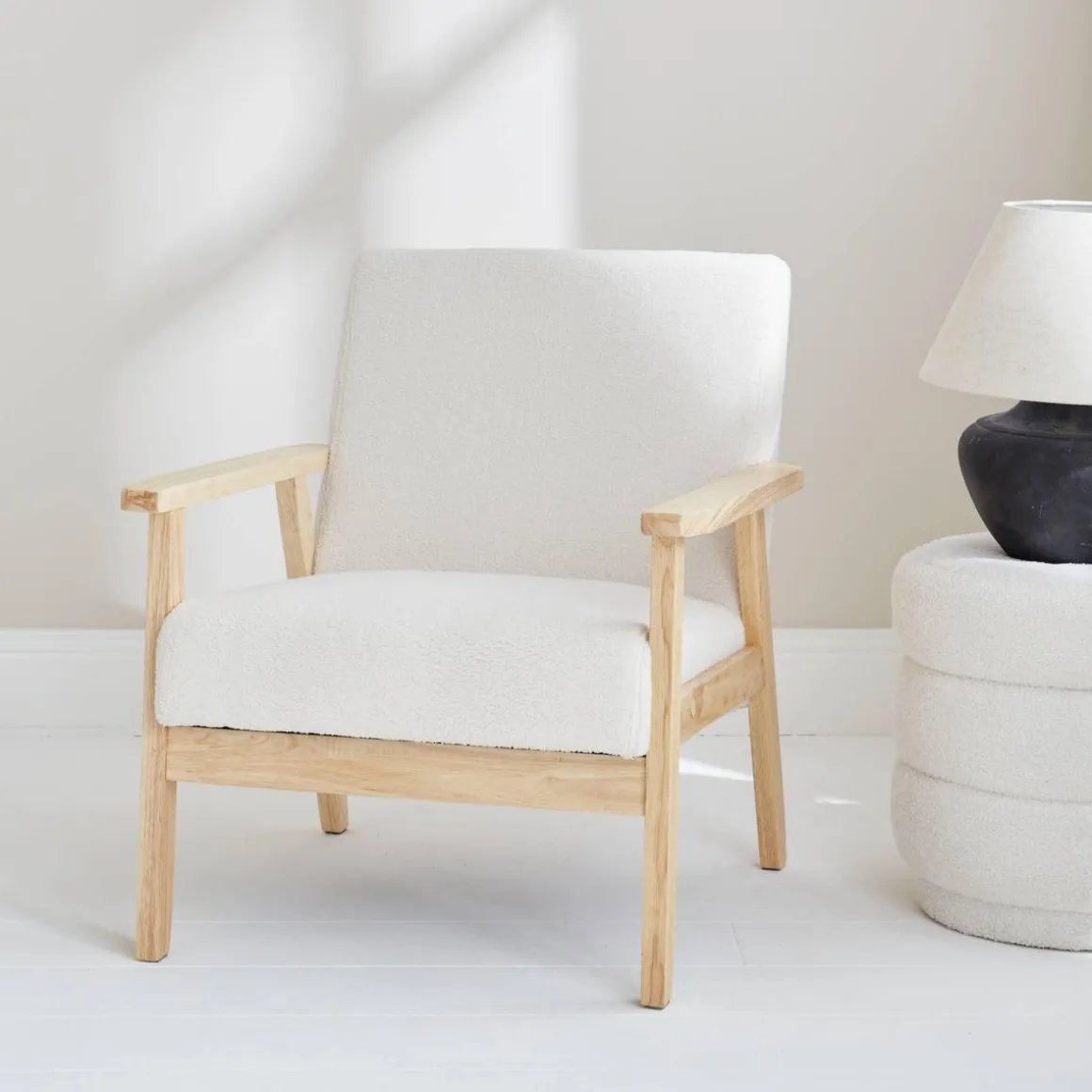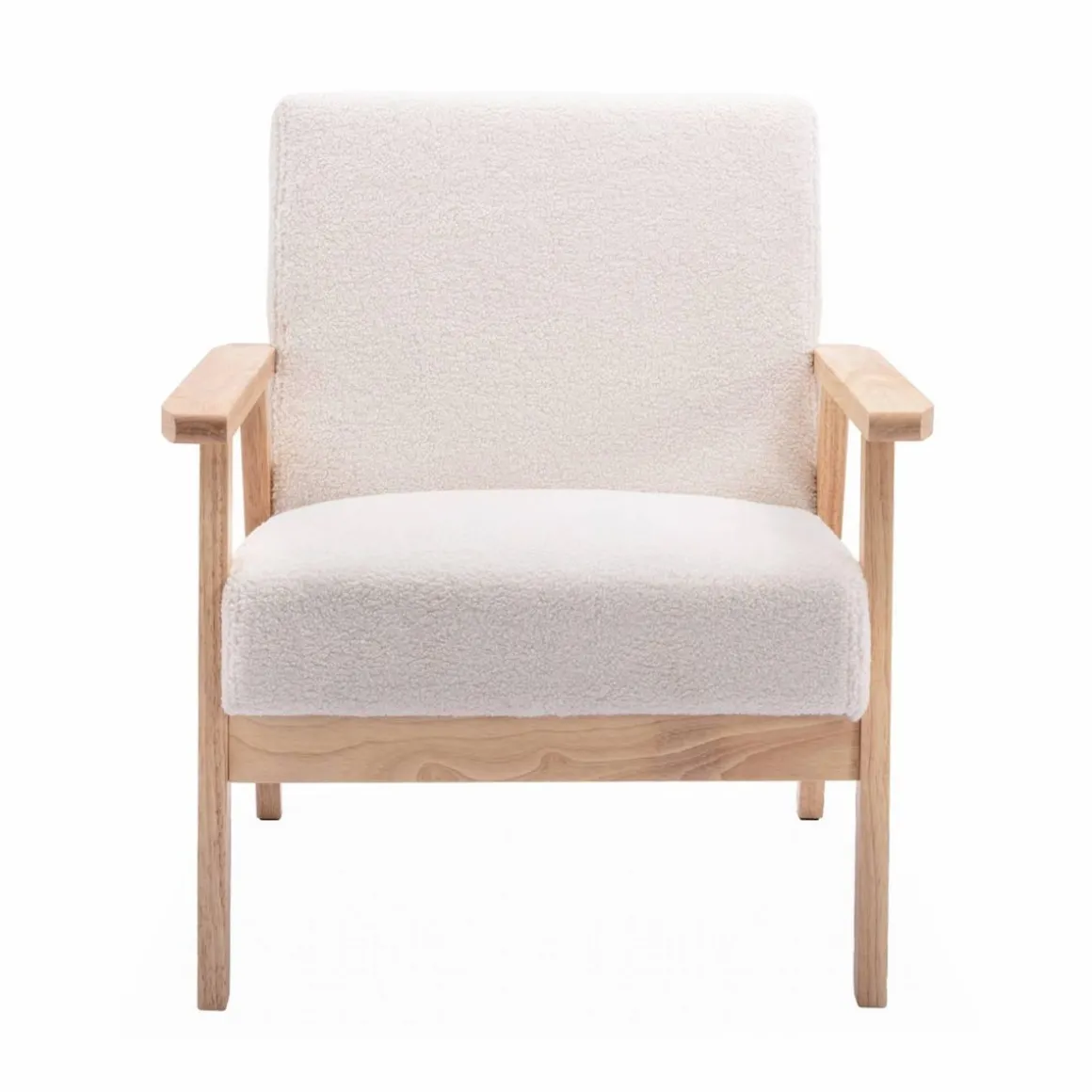 Vous recherchez un fauteuil élégant et confortable qui donnera à votre maison une touche vintage ? Ne cherchez pas plus loin ce fauteuil de style scandinave est exactement ce qu’il vous faut ! Ses pieds en bois d’hévéa, sa structure en bois de peuplier et contreplaqué et son revêtement tout doux et cocooning en bouclette blanche lui confèrent à la fois stabilité et douceur, tandis que son assise remplie de ressorts en zigzag vous assure des heures de détente confortable. Que vous le placiez dans votre salon en tant qu’assise supplémentaire à votre canapé ou dans votre bureau en tant que coin de lecture cocooning, ce fauteuil rétro est sûr de devenir votre nouvel endroit préféré dans la maison ! Pour rendre l’expérience encore plus relaxante, ajoutez une couverture douce et savourez votre tasse de café ou de thé bien chaude.