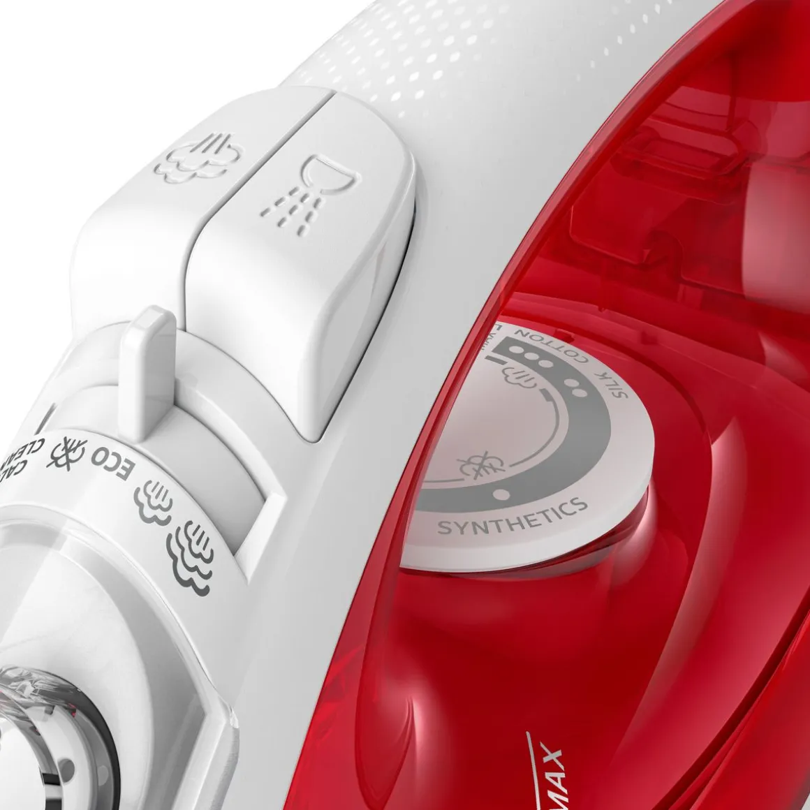 Le fer à repasser Philips G1742/40 est un appareil de couleur rouge d’une puissance de 2000 W, capable de produire un débit de vapeur de 25 g/min. Il dispose d’un réservoir d’eau d’une capacité de 220 ml et d’un système anti-goutte et anticalcaire pour éviter les taches sur les vêtements.