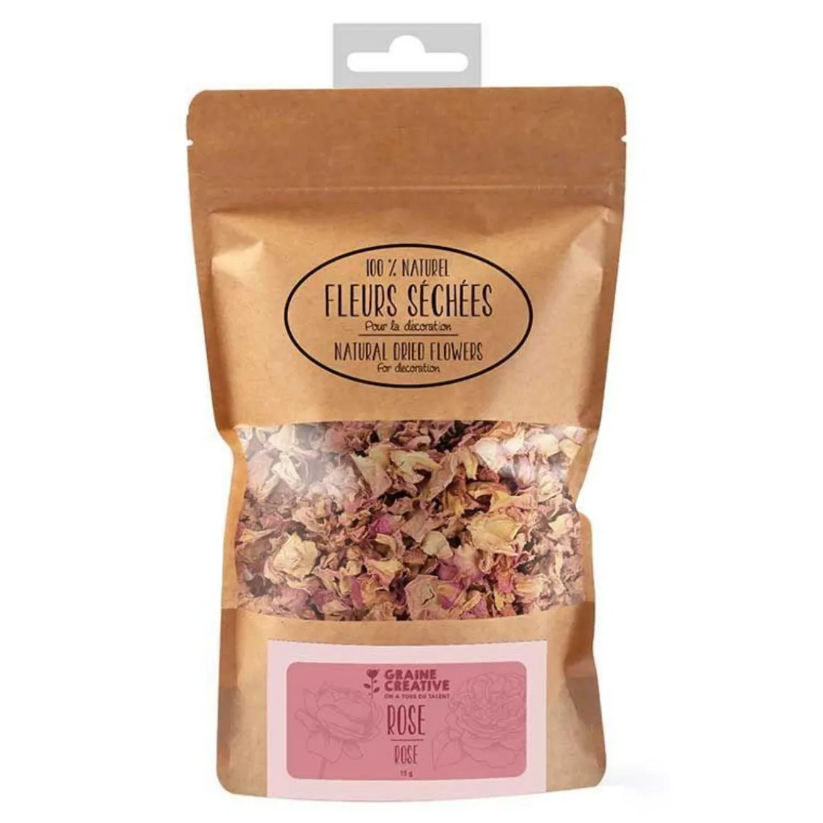 Sachet de fleurs séchées de pétale de rose. Ces fleurs décoratives de la marque Graine Créative seront parfaites pour décorer vos bougies. Elles sont 100% naturelles, elles n’ont pas eu de traitement. Vous pouvez aussi les utiliser pour agrémenter votre décoration. Collez-les sur des carnets, des boîtes en bois, laisser parler votre créativité. Ce sachet contient 15 g de fleurs. Couleur : rose.