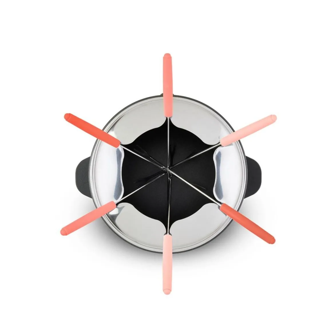 Caquelon d’une capacité de 1,6 L pour 6 personnes, avec fourchettes colorées, parfait pour des soirées conviviales.