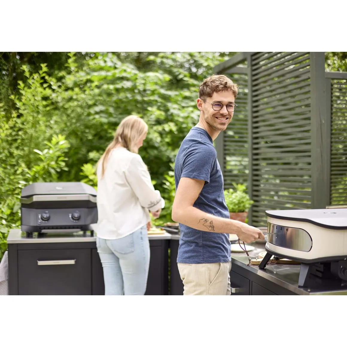 Notre four à pizza Cozze est idéal pour la cuisson de pizzas en plein air. Avec sa large ouverture, sa pierre de cuisson et ses brûleurs en U qui suivent la pierre, le four est simple d’utilisation et peut accueillir sans problème de grandes pizzas jusqu’à Ø42,5 cm. Il est équipé d’un thermomètre pour que vous puissiez facilement contrôler la température. Le four est prêt à l’emploi environ 20 minutes après l’avoir allumé, après quoi vous pouvez rapidement cuire de délicieuses pizzas pour de grandes fêtes ou simplement pour la famille.