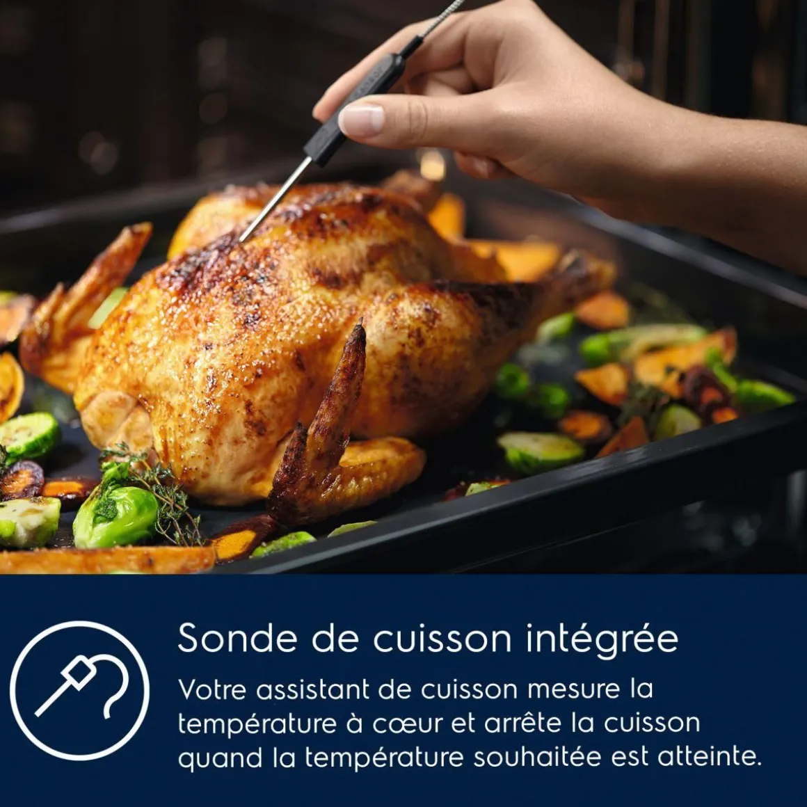 | Sonde de cuisson | la sonde de cuisson permet de surveiller la température à coeur de votre plat. Elle met fin au programme une fois la température atteinte. Vous avez la certitude de réussir vos cuissons même délicates | |