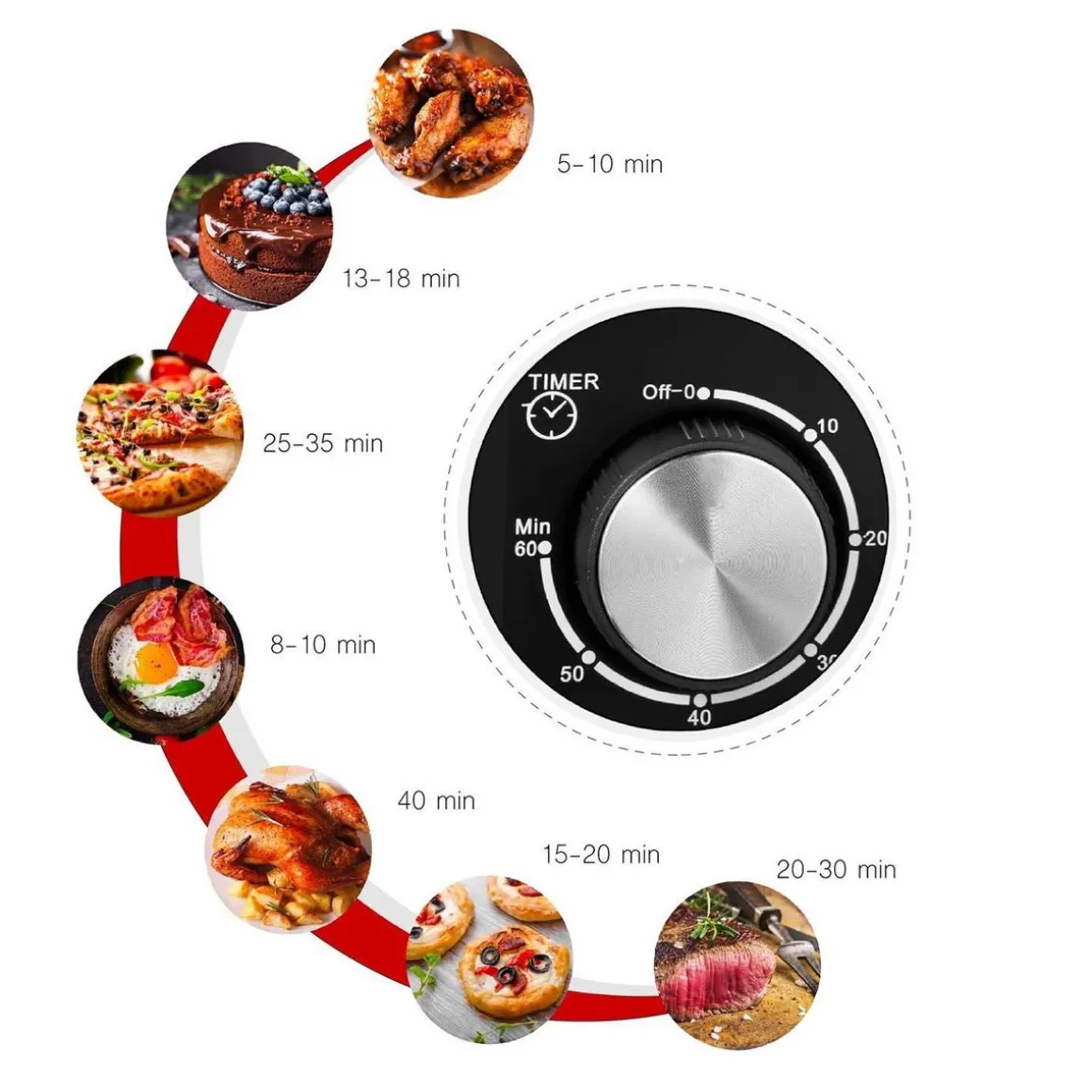 Minuteur de 0 à 60 minutes avec arrêt automatique et sonnerie en fin de cuisson