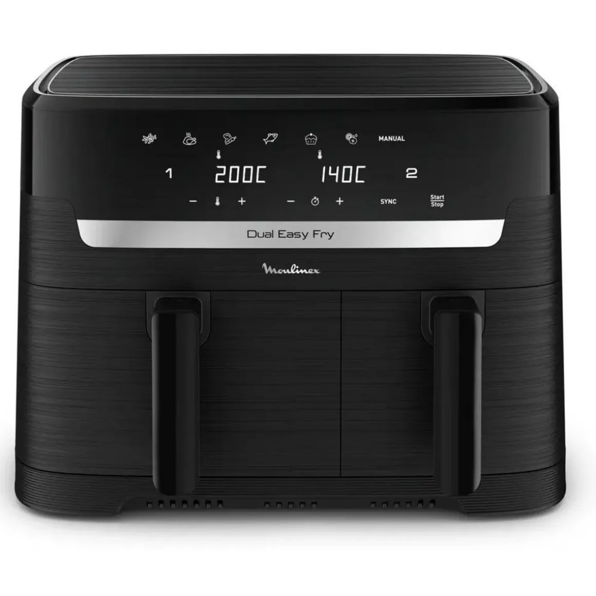 Easy Fry Dual de Moulinex dispose de 2 tiroirs pour cuire 2 plats différents en même temps, comme de la viande grillée et des frites ou encore du poisson frit et des légumes grillés. Ses 7 programmes de cuisson prédéfinis vous permettent de griller, de cuire à l’air chaud ou de rôtir vos aliments sans aucune surveillance.