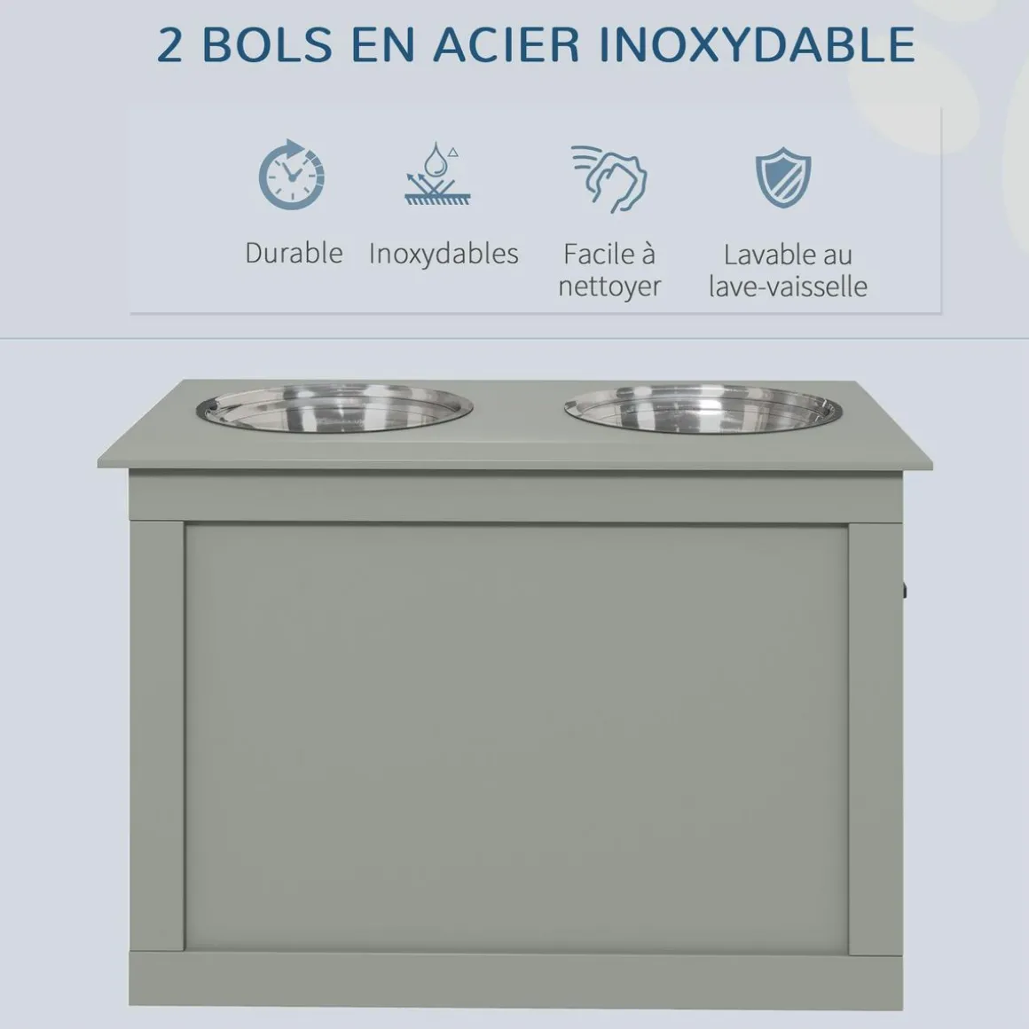 – Comprend 2 gamelles en acier inoxydable très facile d’entretien