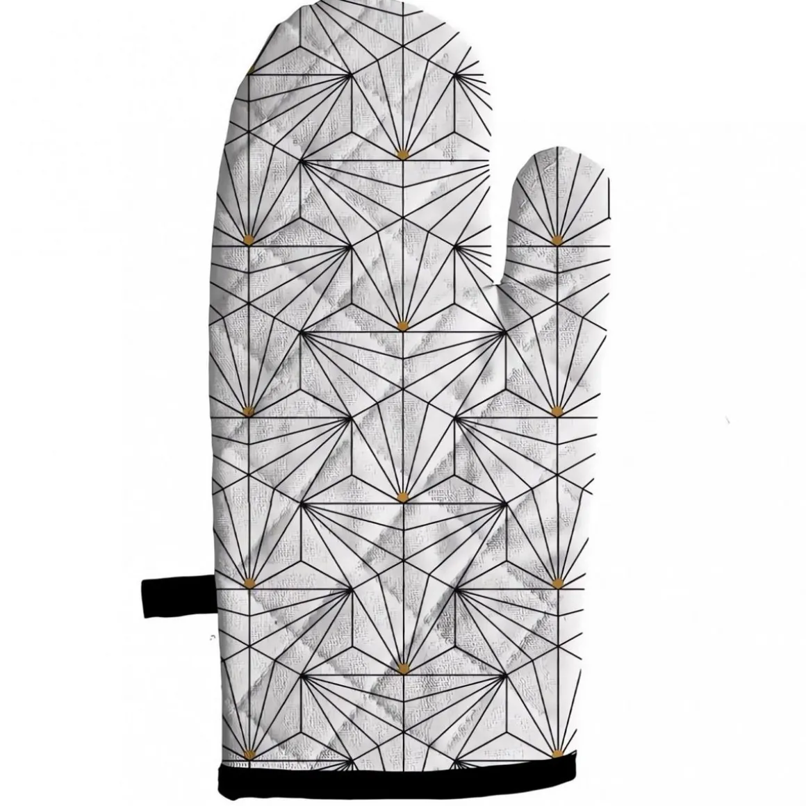 Gant de cuisine en pur coton, style moderne. Il vous protègera parfaitement lors de vos expériences culinaires! Couleur: blanc, noir et or. Composition: 100 % coton. Dimension: 16×32 cm. Entretien: lavage 40°C
