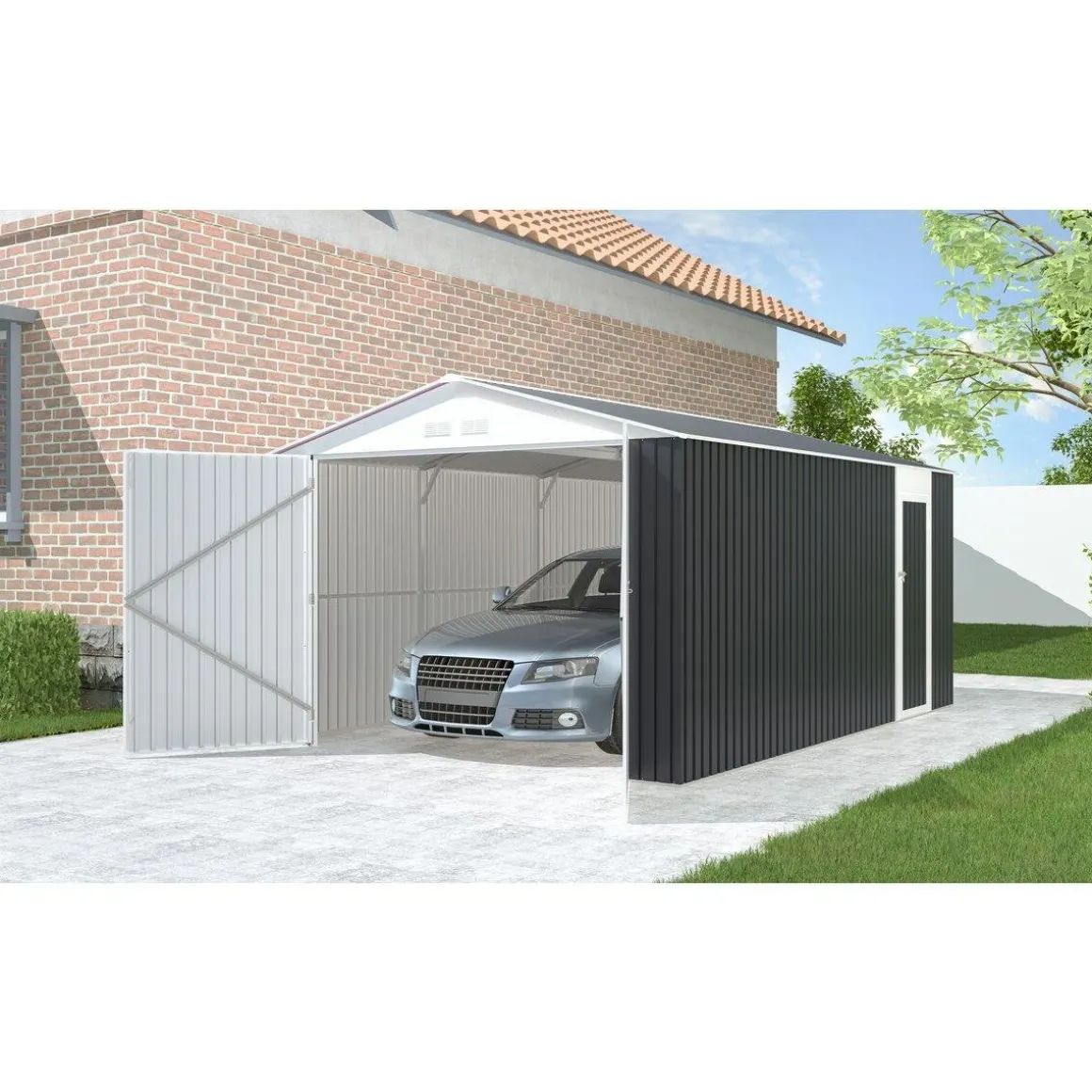 Garage métal Houston 15,36m² – Anthracite.