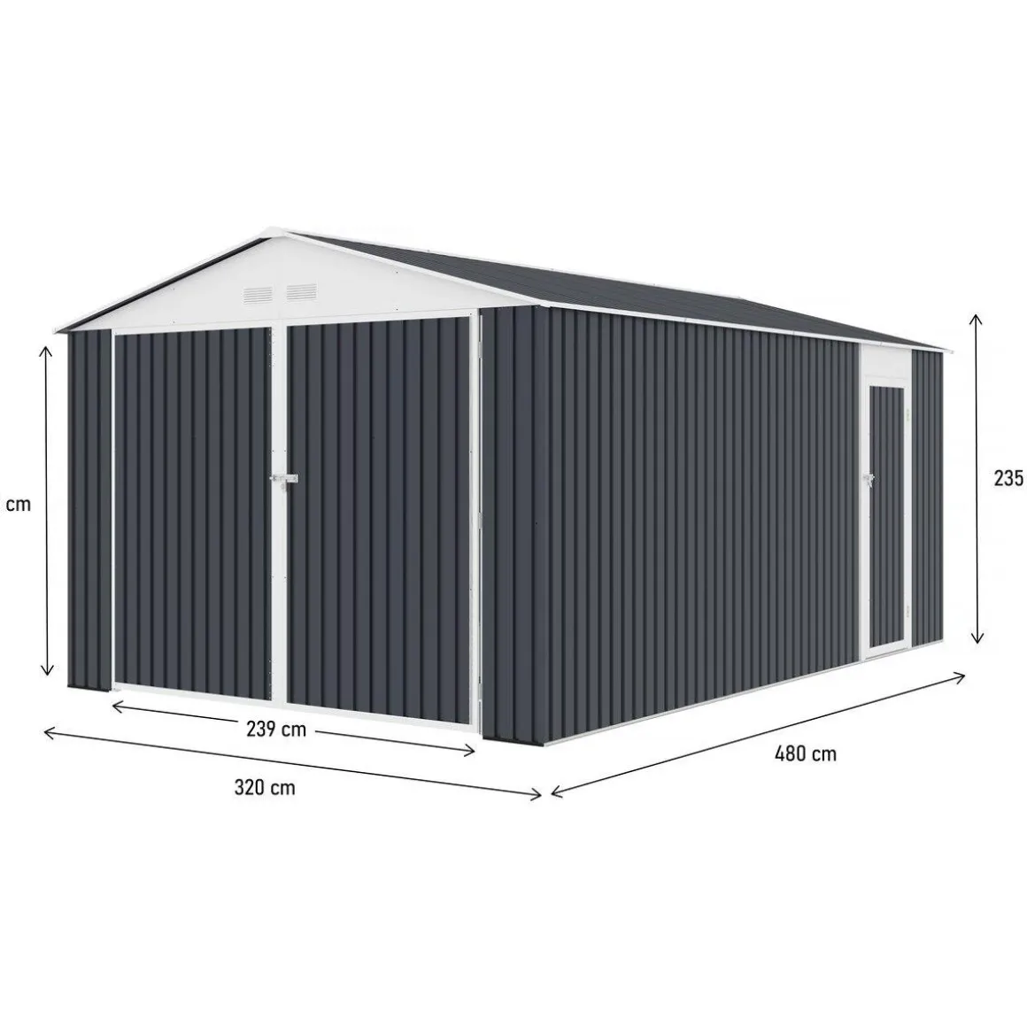 Hauteur faîtage : 235 cm.