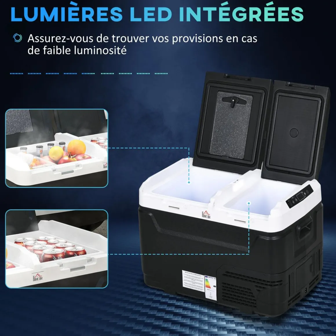 – L’éclairage LED intégré vous permet de trouver plus facilement vos boissons ou nourritures
