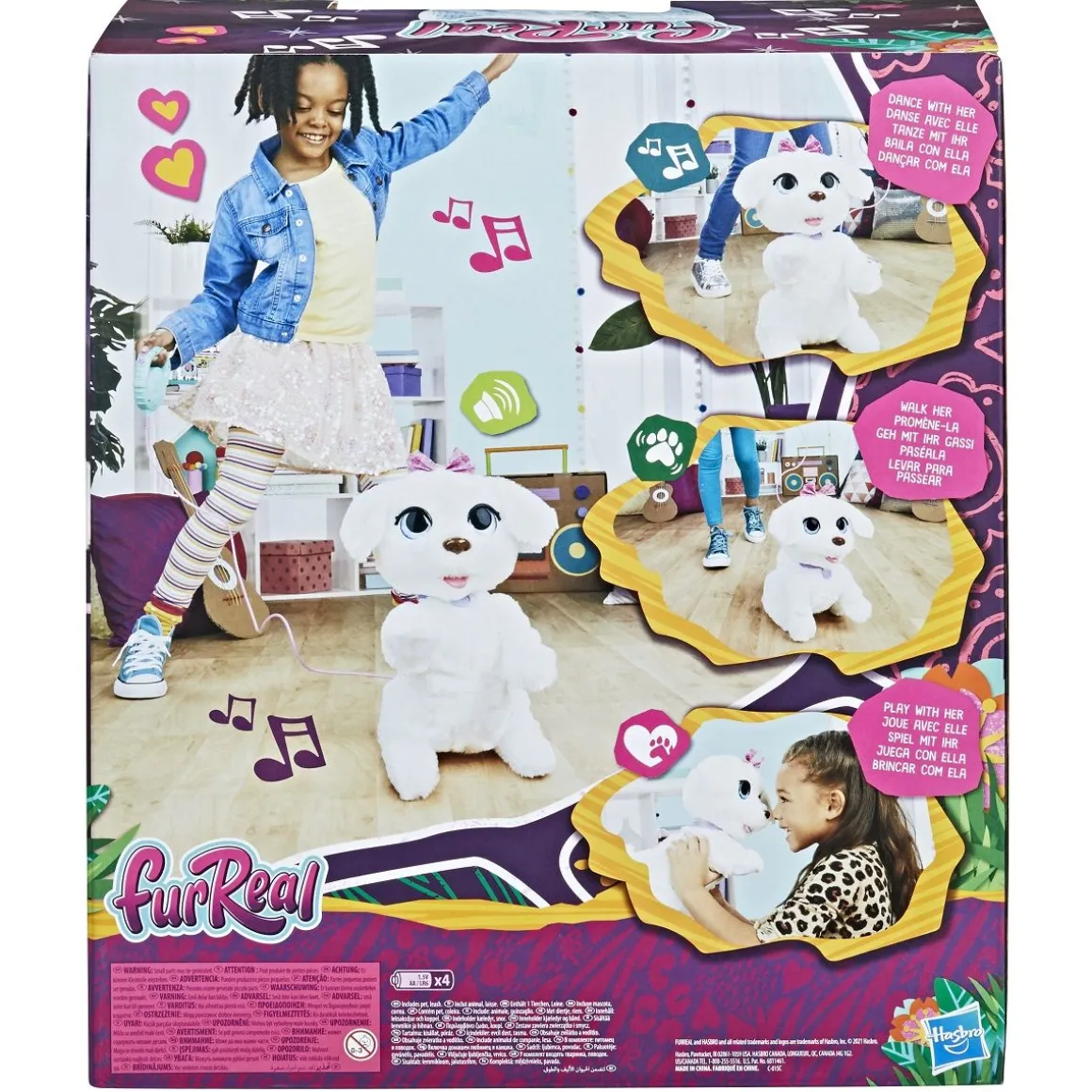 GoGo mon chiot qui danse de furReal fera danser les amoureux des animaux. Mignonne et interactive, GoGo la peluche dansante électronique est vendue avec une laisse automatique facile à utiliser. On appuie sur le bouton Dance de la laisse pour que le chiot se lève sur ses pattes arrière et danse en jouant 5 chansons différentes. On appuie sur le bouton Marche de la laisse pour promener GoGo et l’entendre émettre des sons amusants. Avec plus de 50 sons et réactions, cette peluche animatronique déborde de surprises. De plus, lorsqu’on promène GoGo, elle remue sa tête de façon adorable. furReal et toutes les marques associées sont des marques de commerce de Hasbro.