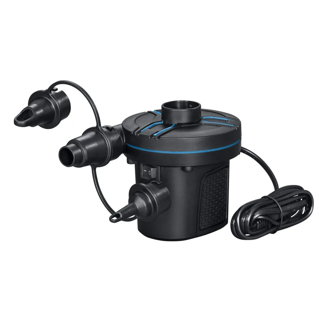 Taille : 11,3 cm x 10,1 cm x 11 cmDébit d’air maxi : 680 L/minGonfle les objets jusqu’à 0,038 BAR/0,55 PSITension : 220-240 V~50 Hz, 110 WGrande chambre à air pour un gonflage rapideGonfle et dégonfle rapidement presque tous les produits gonflables3 adaptateurs pour valve pour convenir à presque toutes les valves de gonflageContenu : 1 pompe électrique, 3 adaptateurs de valve